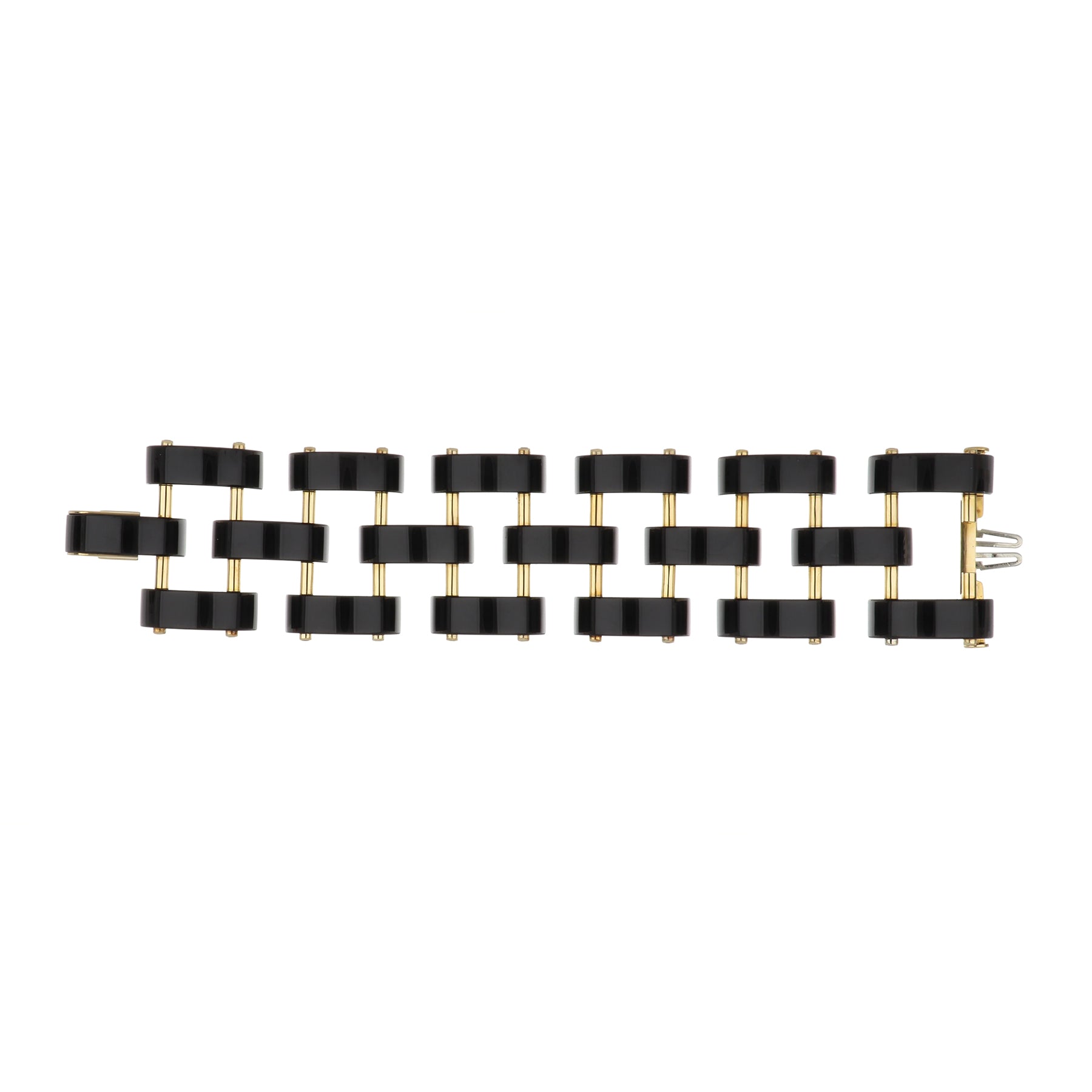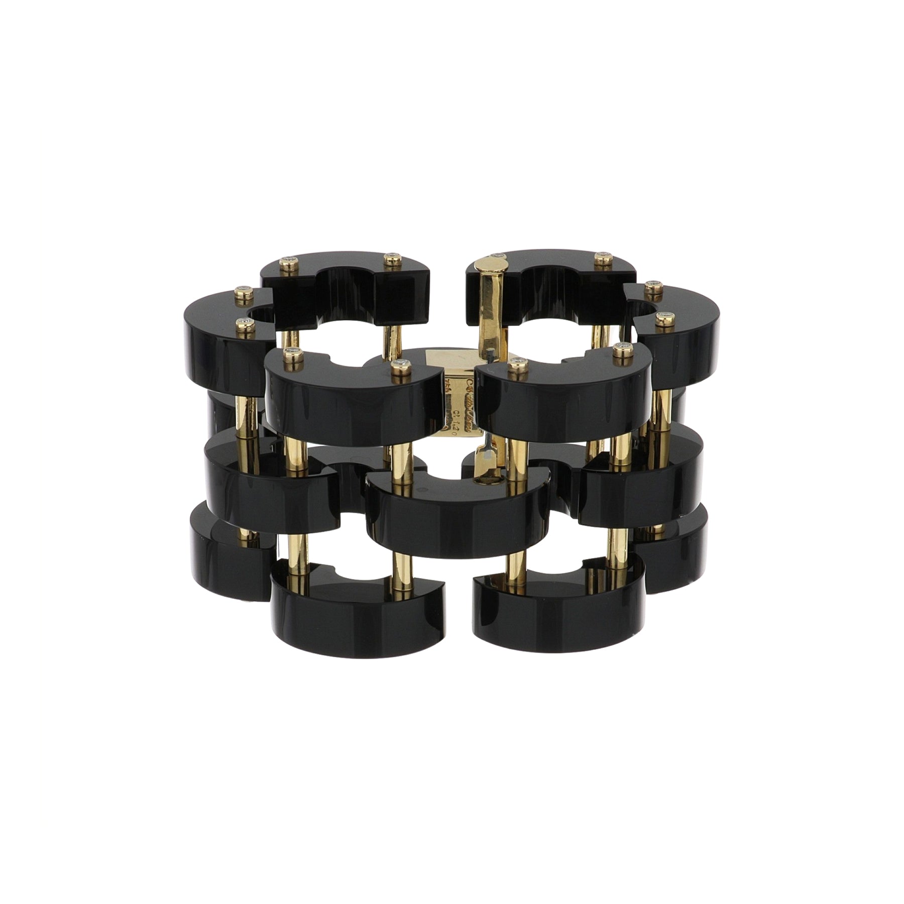 An Aletto Brothers "Icy Tundra" black onyx bridge wide set bracelet with diamond accents, set in 18K yellow gold.