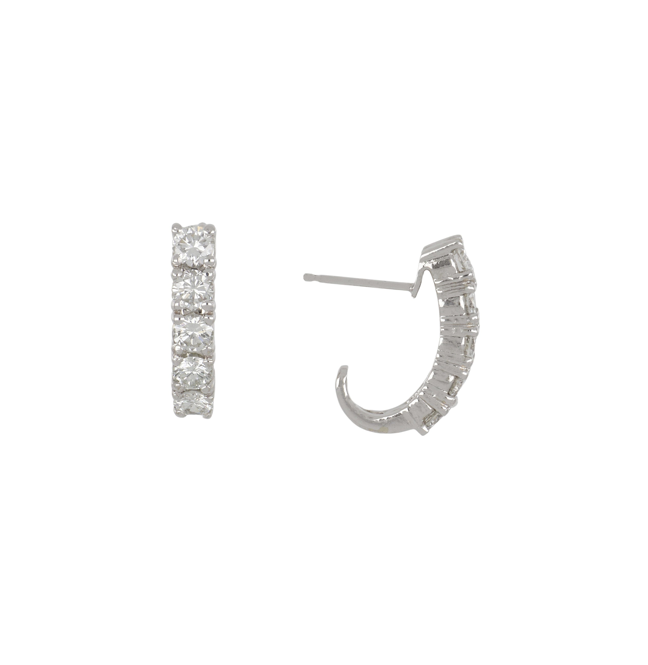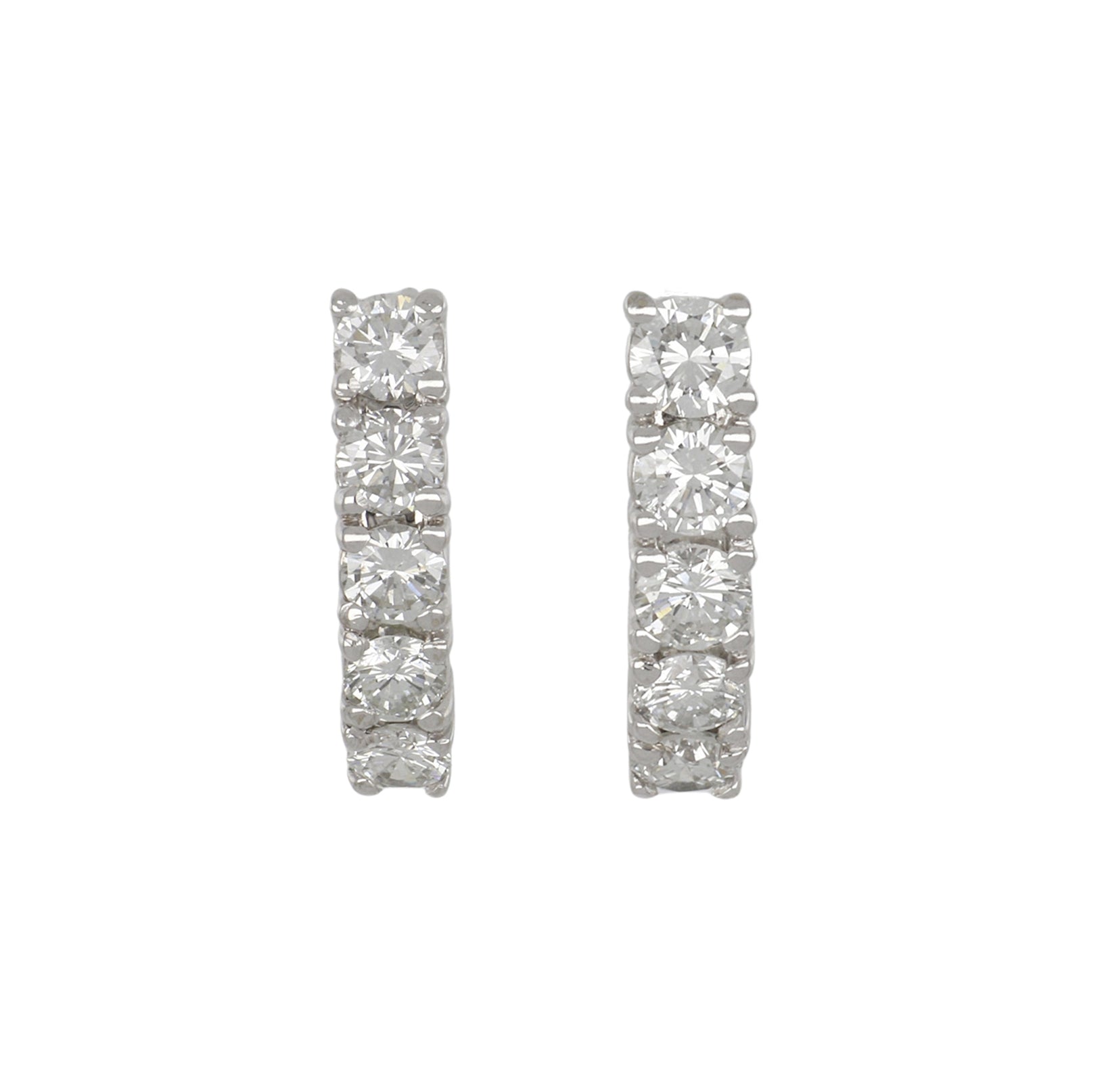 A pair of round brilliant-cut diamond hoop earrings, set in 14K white gold.