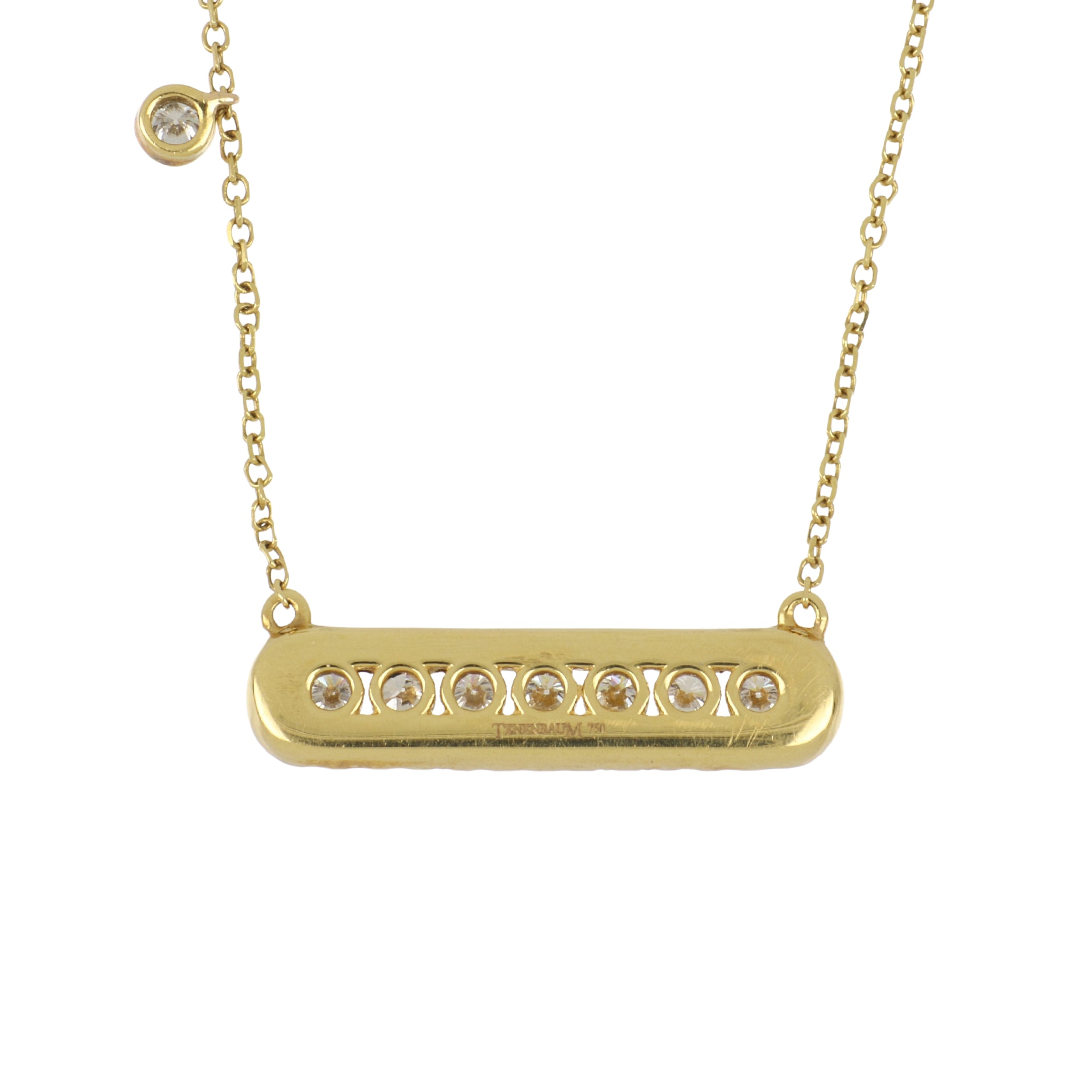 A classic round brilliant-cut diamond bar necklace, set in 18K yellow gold.