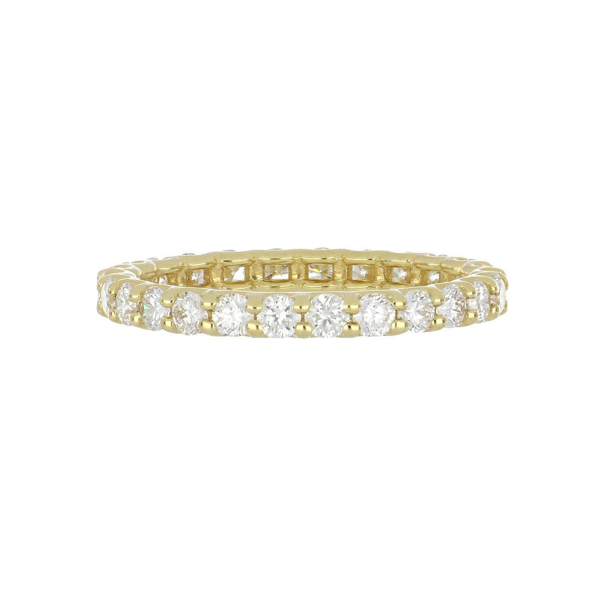 A new round brilliant-cut diamond u-basket eternity band in 18K yellow gold.
