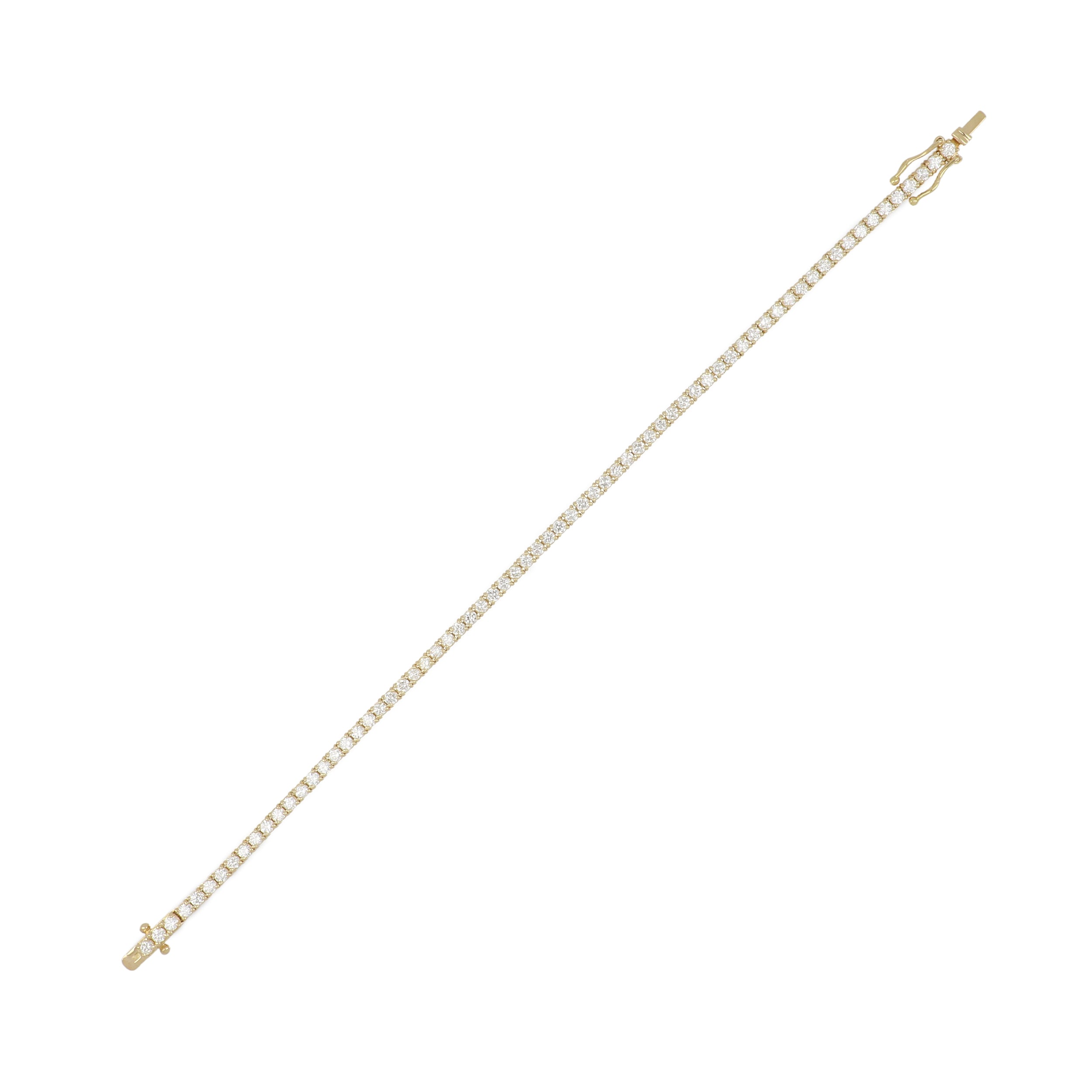 A round brilliant cut diamond line bracelet, set in 18K yellow gold.