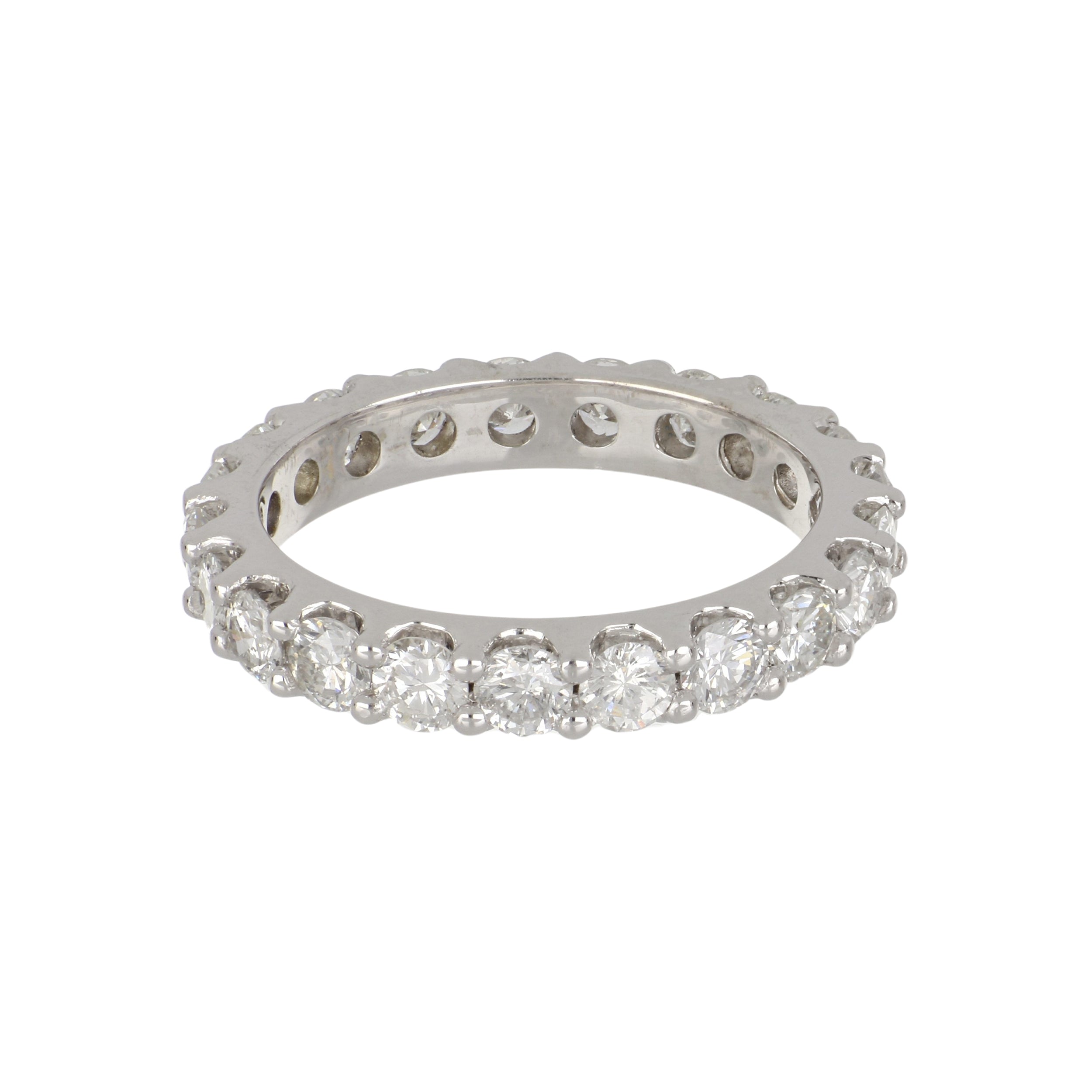 A shared prong-set round brilliant-cut diamond eternity band, set in 18K white gold.