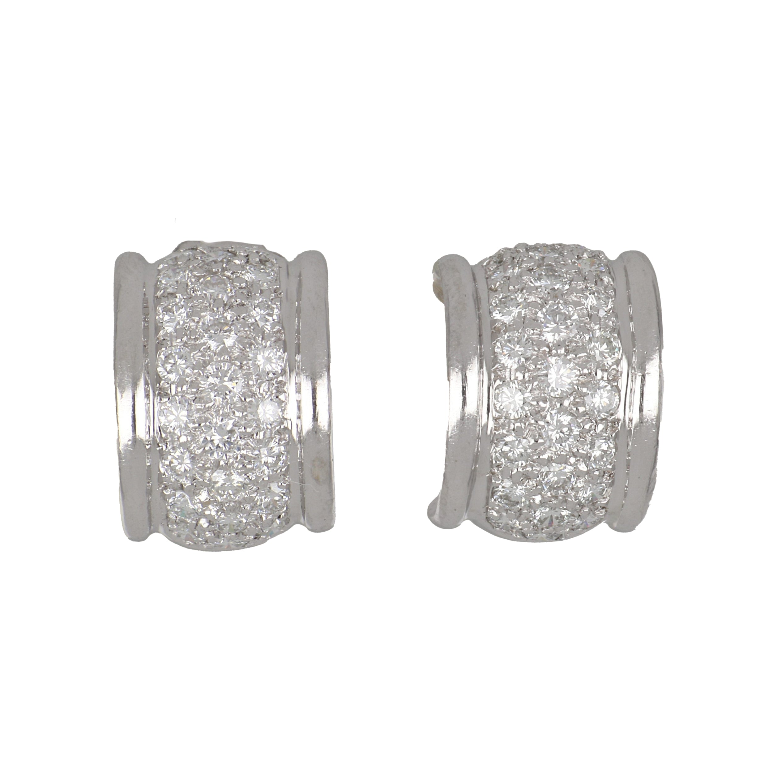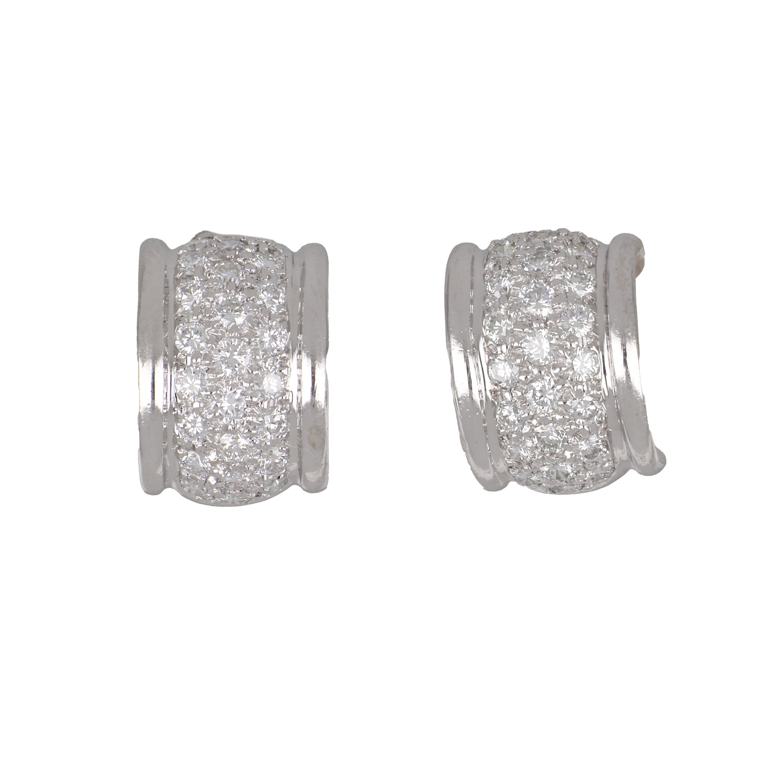 A pair of estate, bespoke pave round brilliant-cut diamond hoop earrings set in 18k white gold.