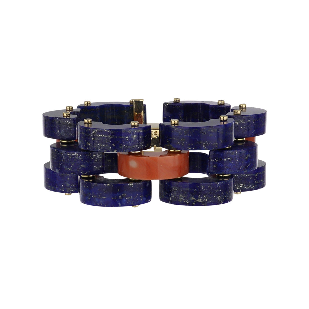Aletto Brothers 18K Gold Coral and Lapis Bridge Link Bracelet