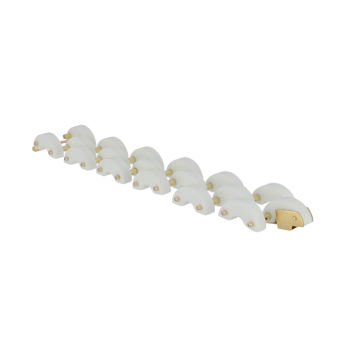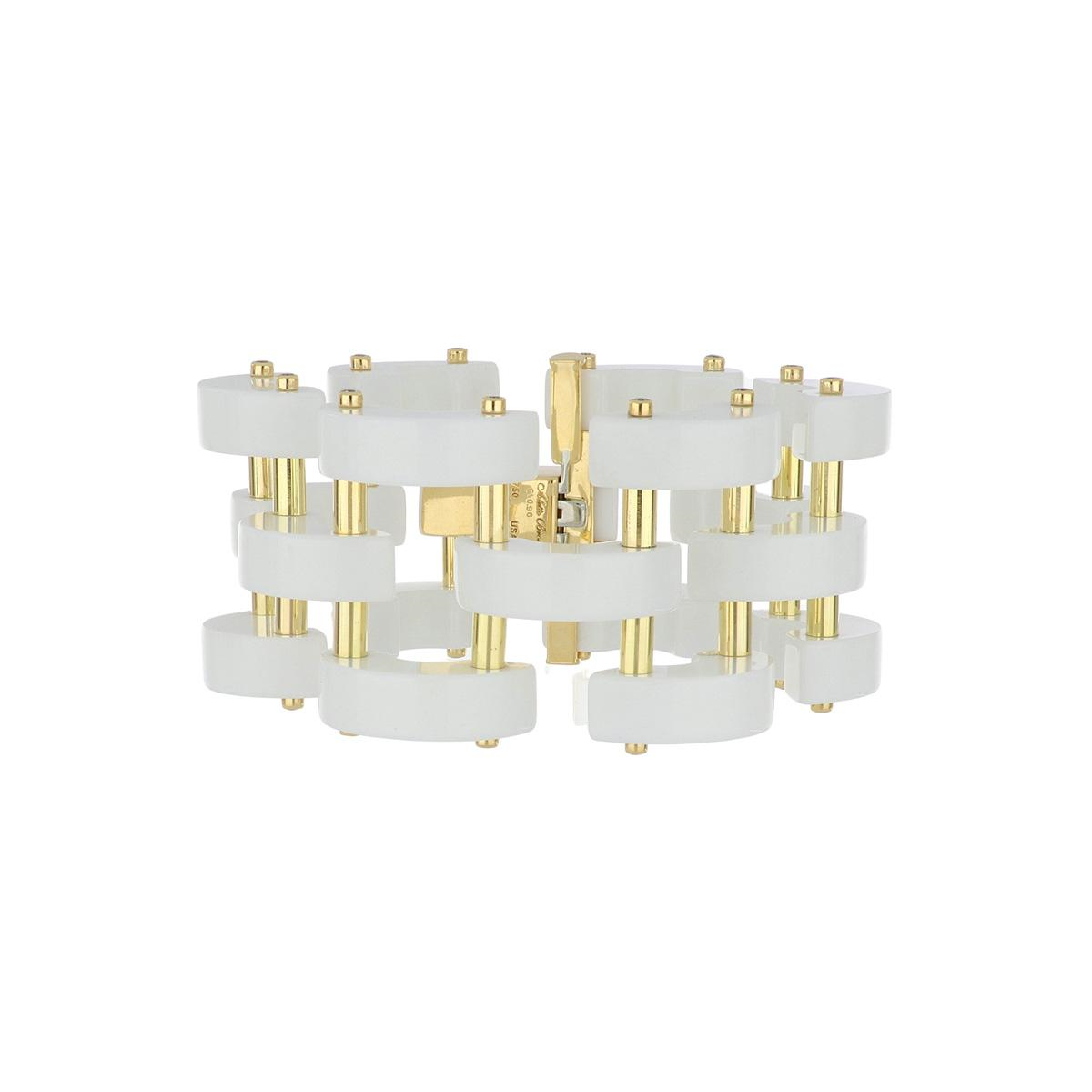 An Aletto Brothers "Icy Tundra" white onyx wide set bracelet with diamond accents, set in 18K Yellow Gold.