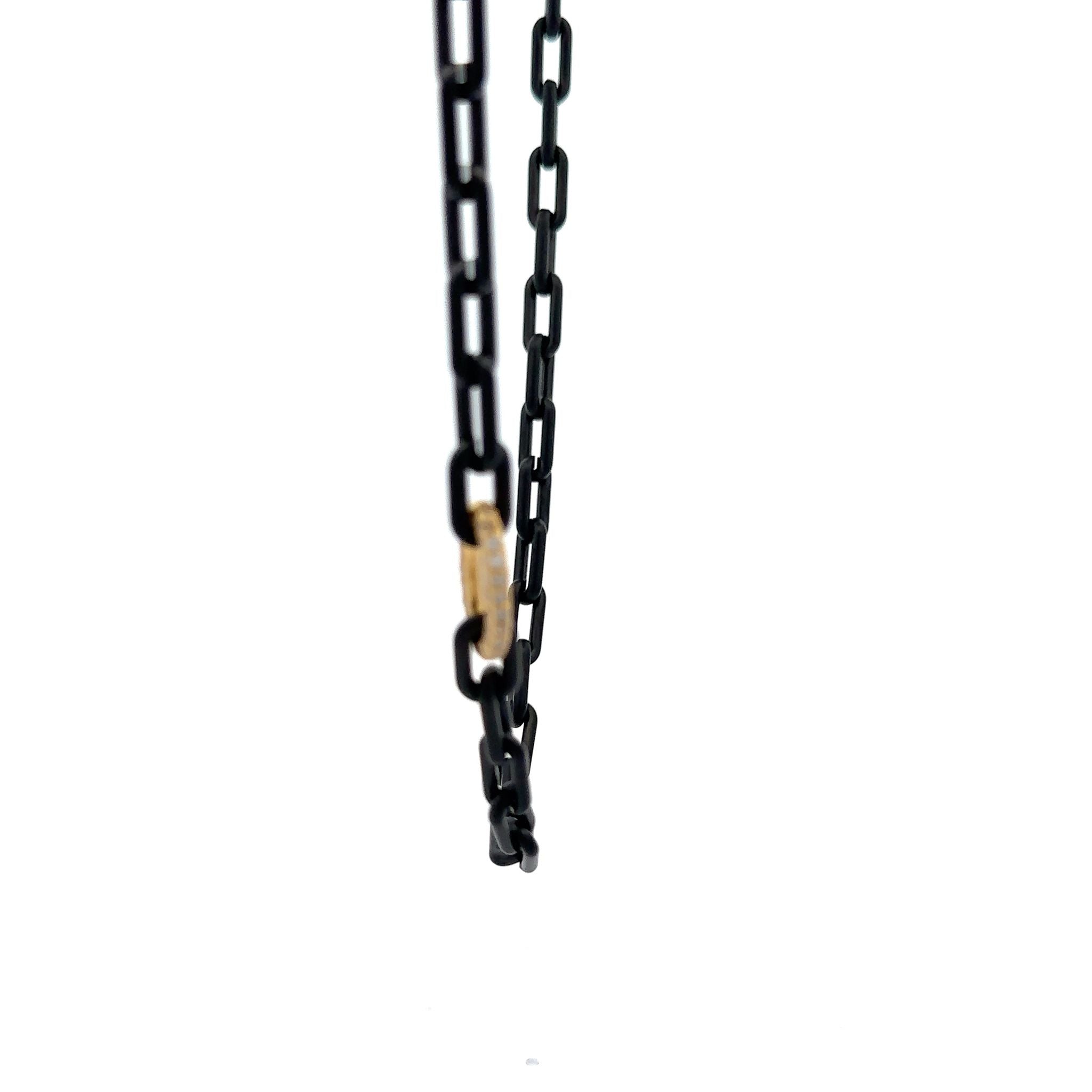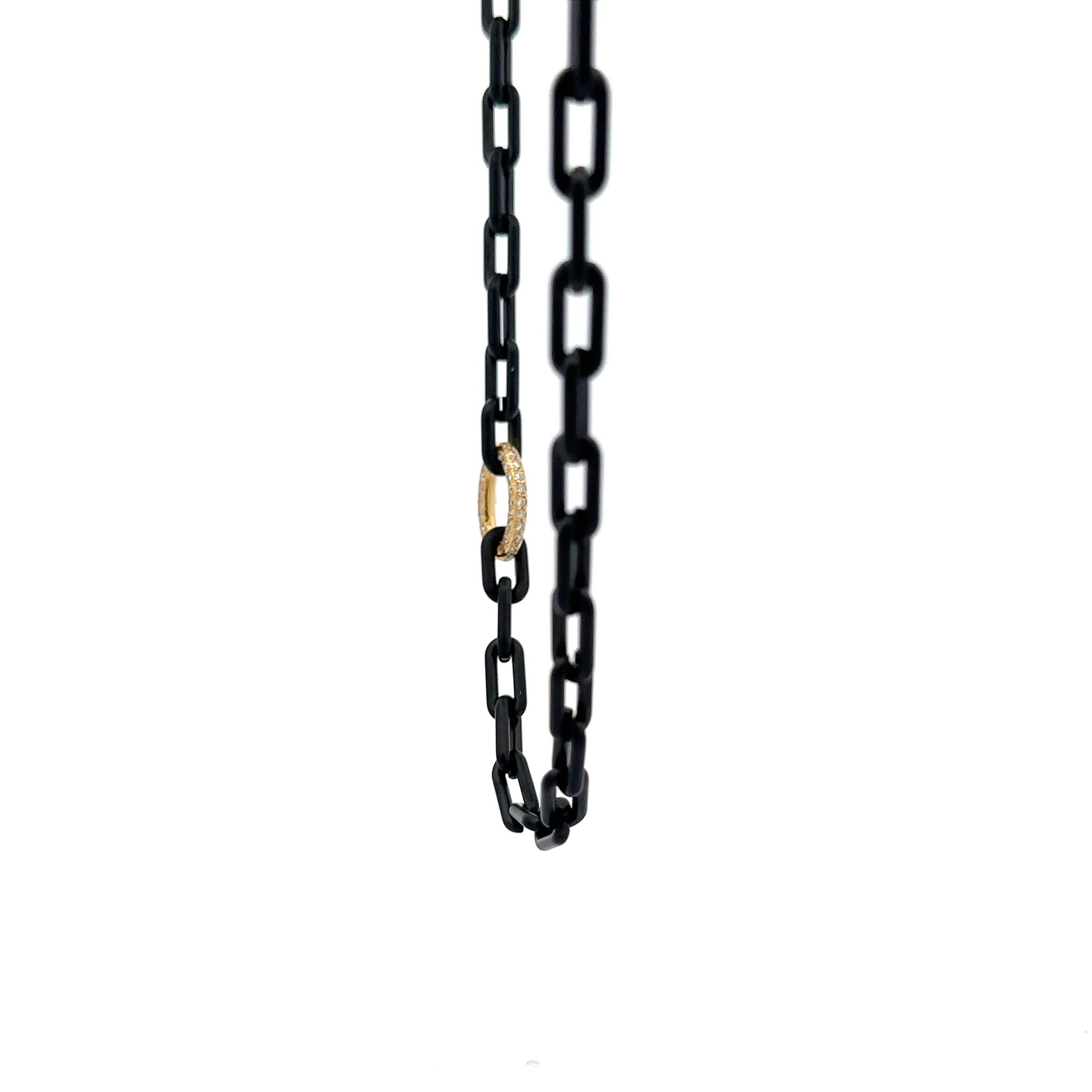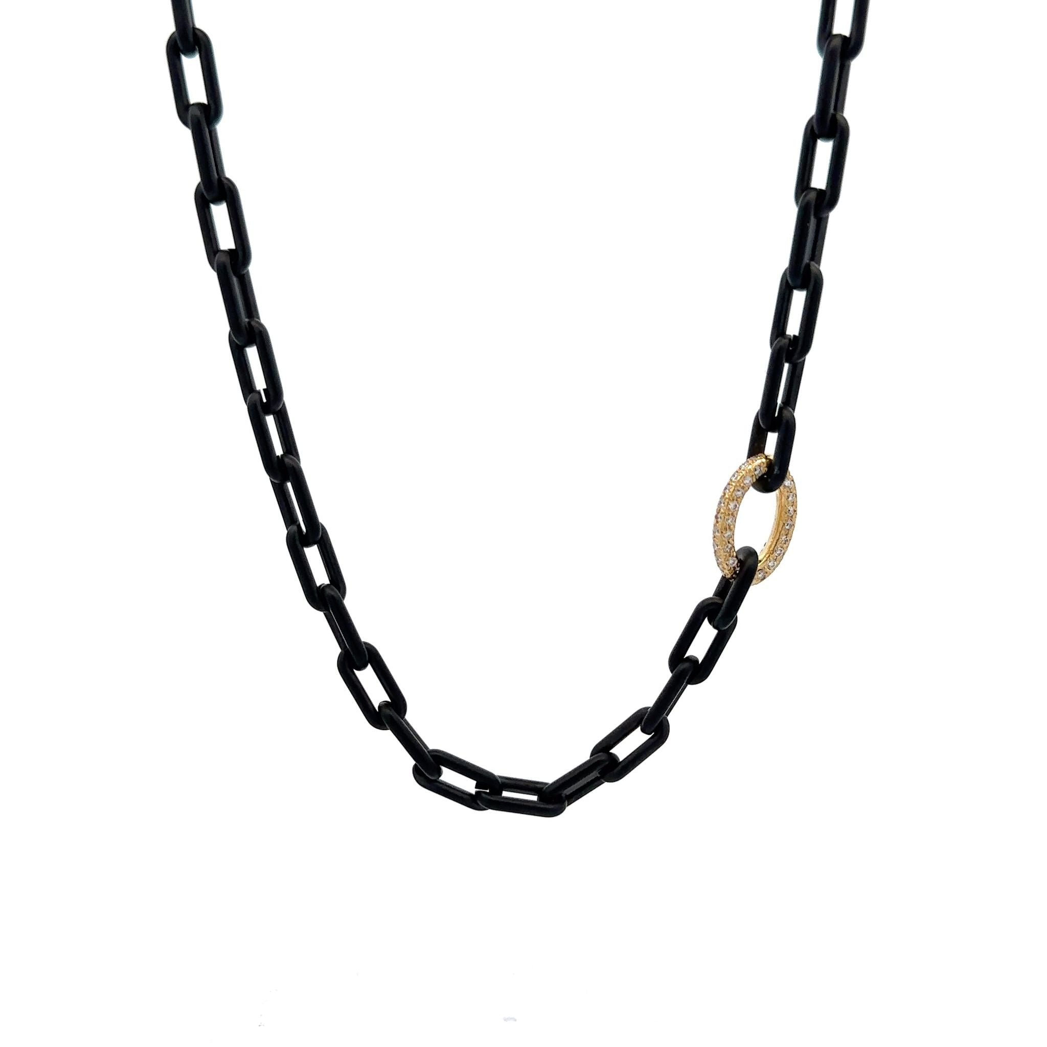 An Antonio Papini 18K yellow gold and titanium chain necklace with an oval pave diamond link.