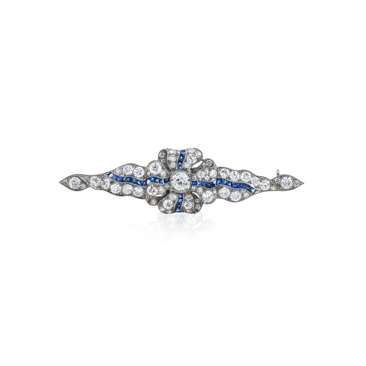 Art Deco Two-Tone Diamond Bar Pin with Sapphires