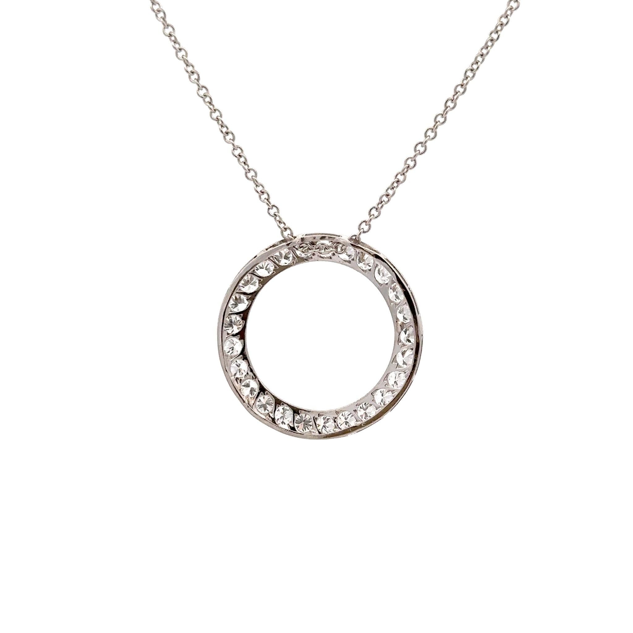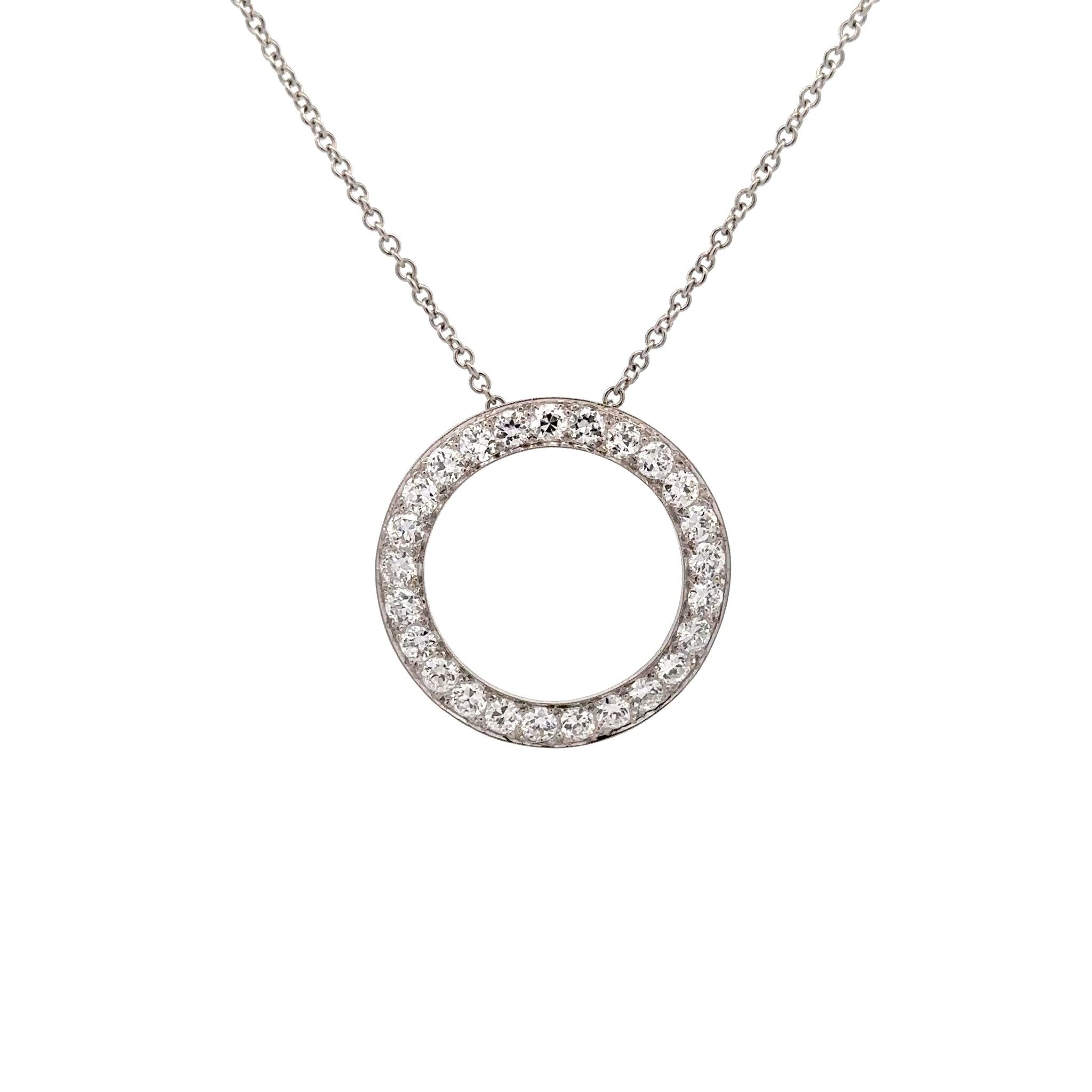 An Art Deco diamond circle, turned into a pendant necklace, in platinum. Circle pendant circa 1930.
