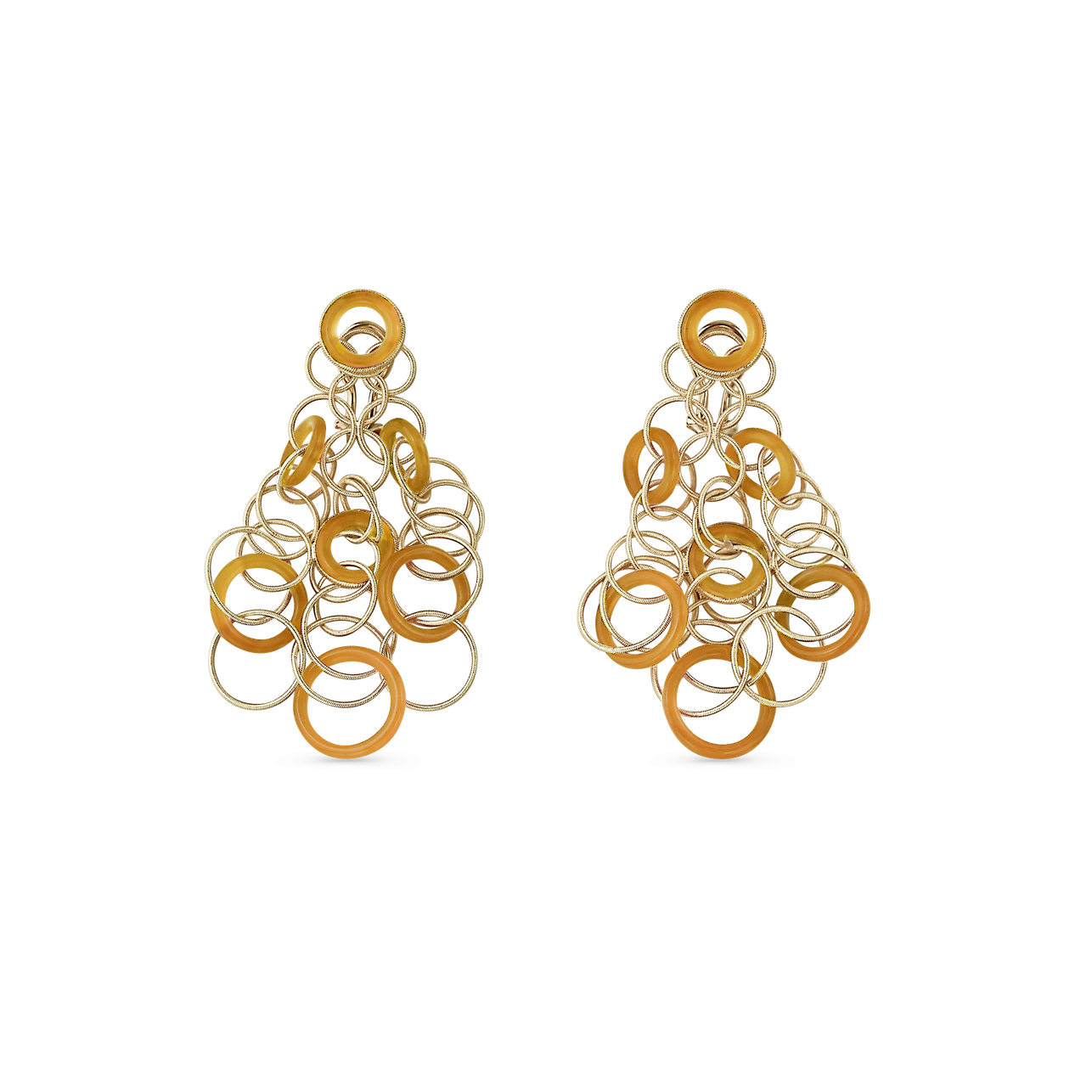 A Buccellati Hawaii open link pendant earring with carnelians, set in 18K yellow gold.