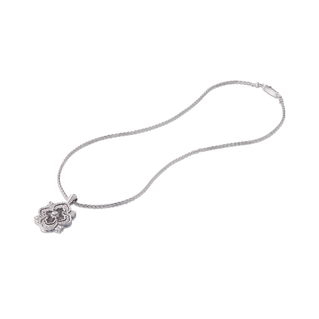A Buccellati Opera Tulle Premium pendant necklace with diamonds, in 18K white gold.