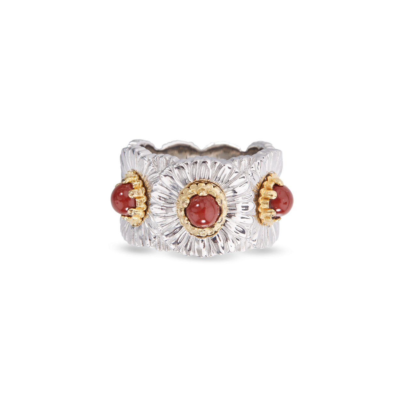A Buccellati Blossom Collection Daisy Eternelle band with red jasper.Official Retailer
