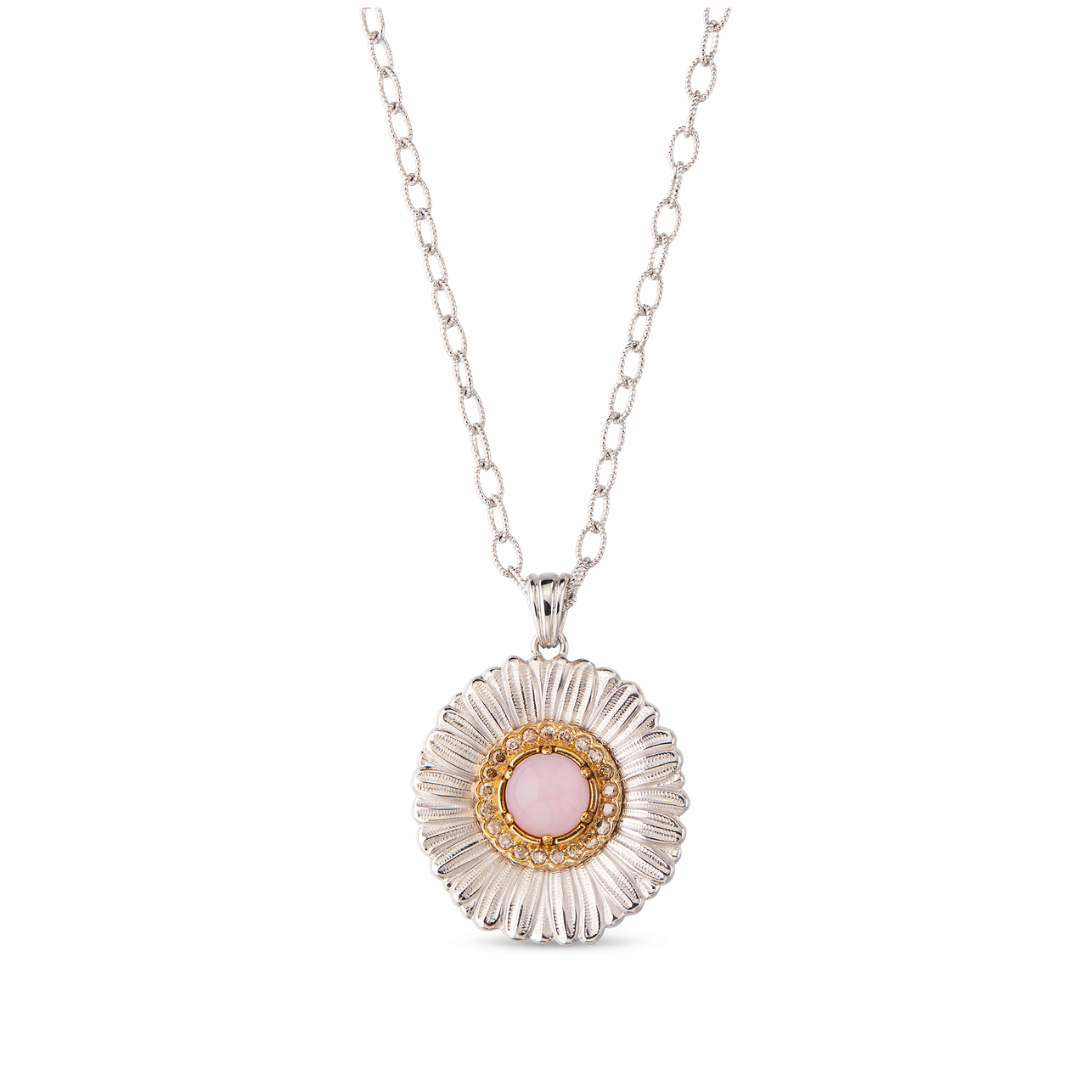 A Buccellati sterling silver with yellow gold accents Daisy Blossom Color Collection pendant necklace with pink opal & fancy colored diamonds.