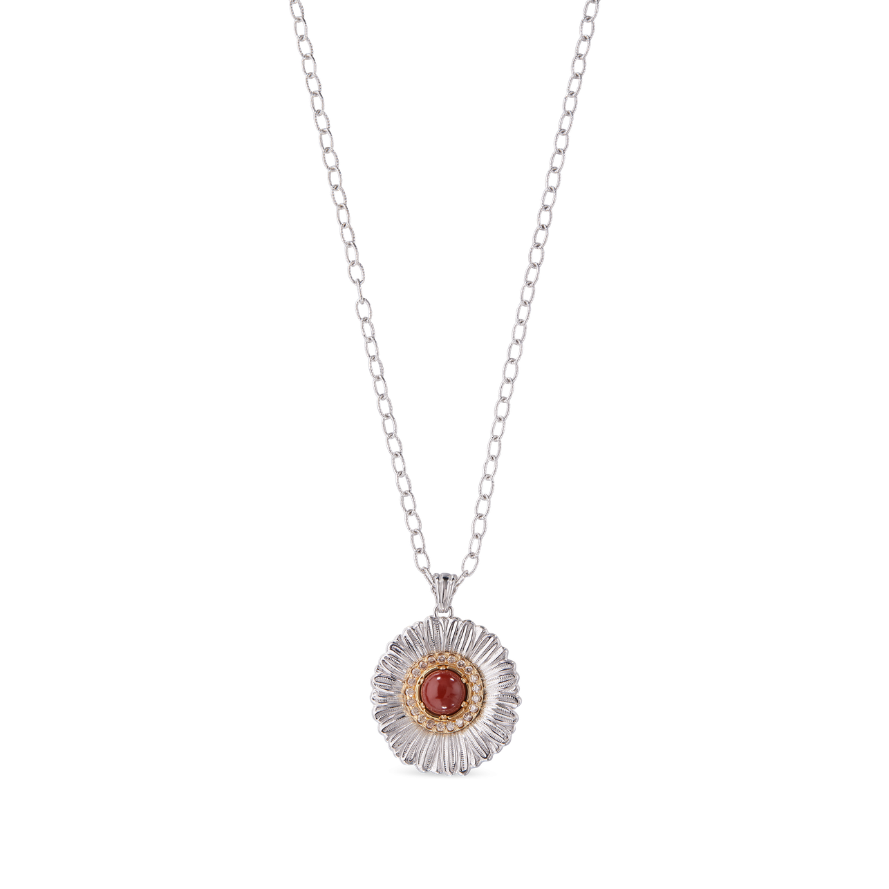 A Buccellati sterling silver with yellow gold accents Daisy Blossom Color Collection pendant necklace with red jasper & fancy colored diamonds.