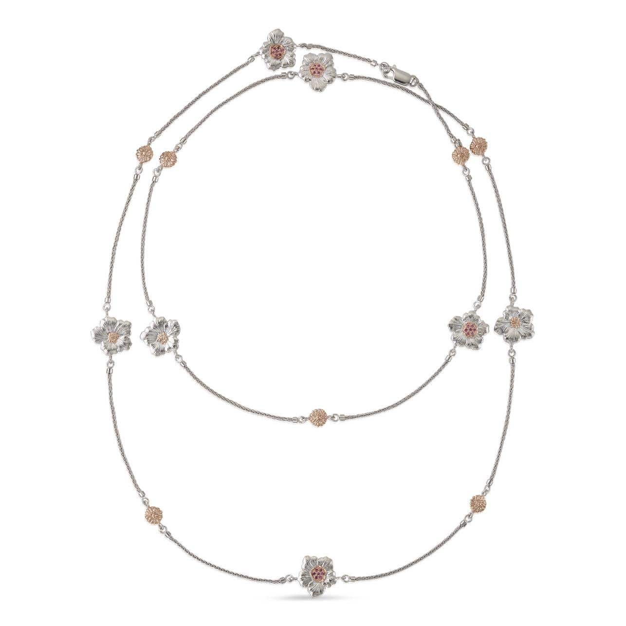 Buccellati Sterling Silver & Rose Gold Gardenia Station Necklace with Pink Sapphires