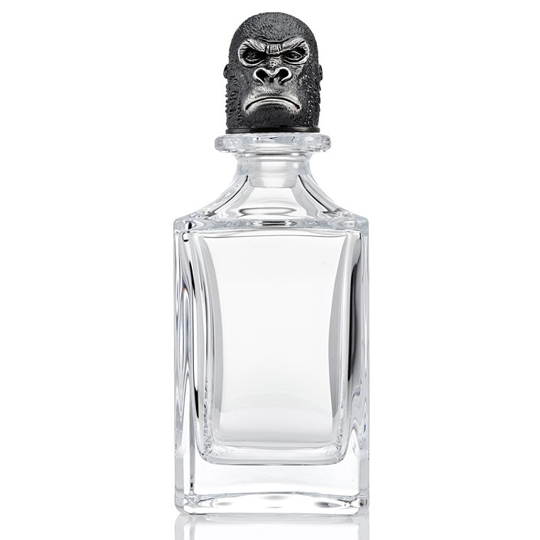 A Deakin & Francis oxidized silver grumpy gorilla head crystal decanter.