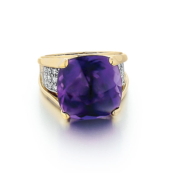 An estate 18K yellow and white gold amethyst and diamond ring.