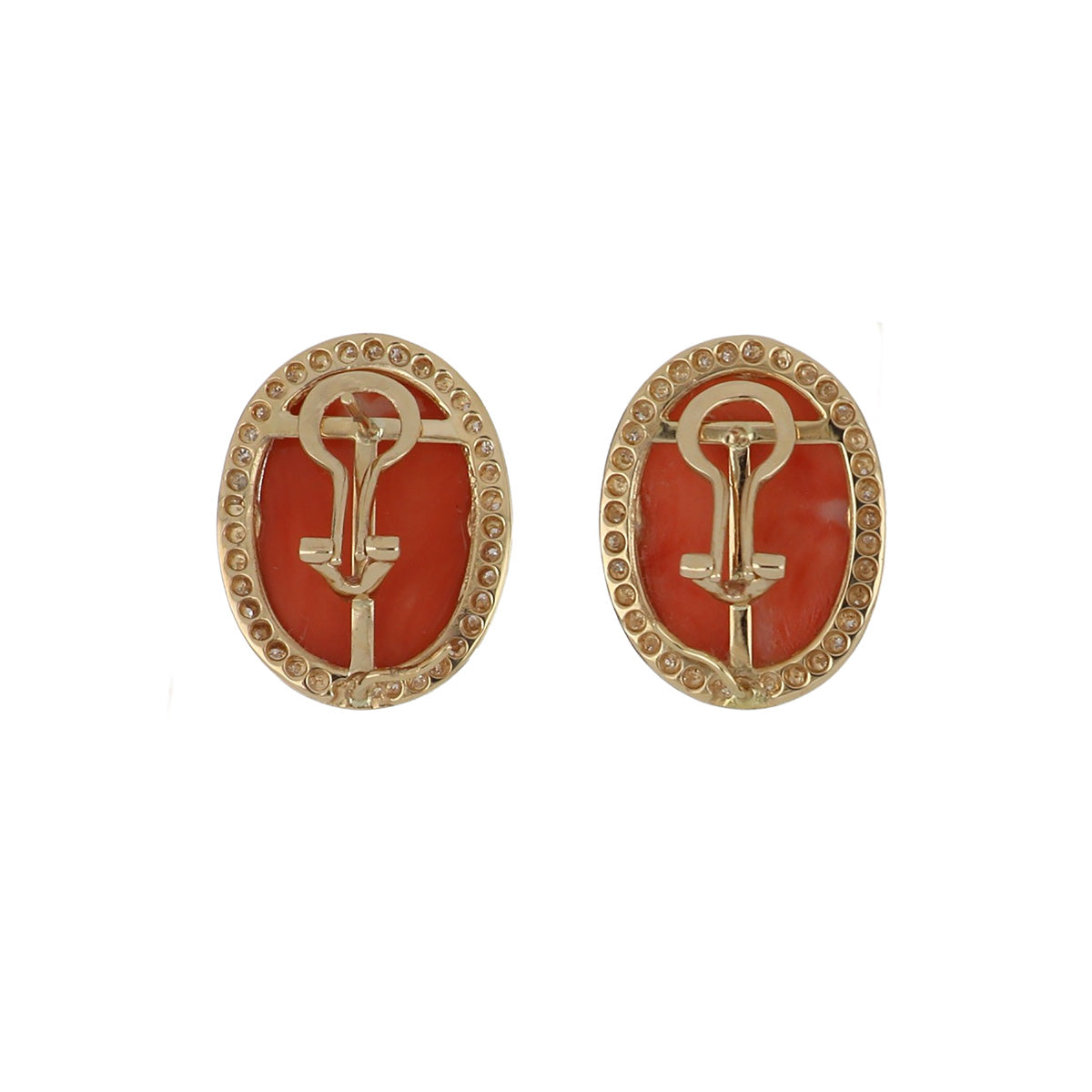 Estate 18K Gold Coral Day/Night Earrings with Diamonds
