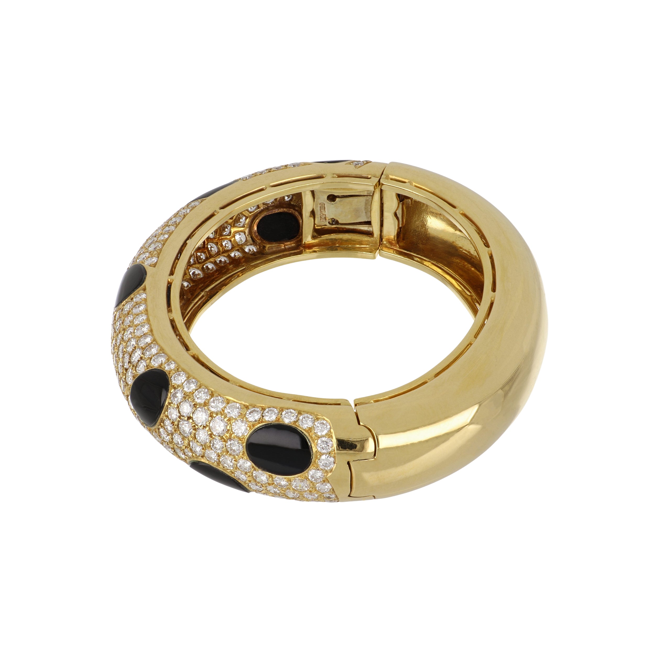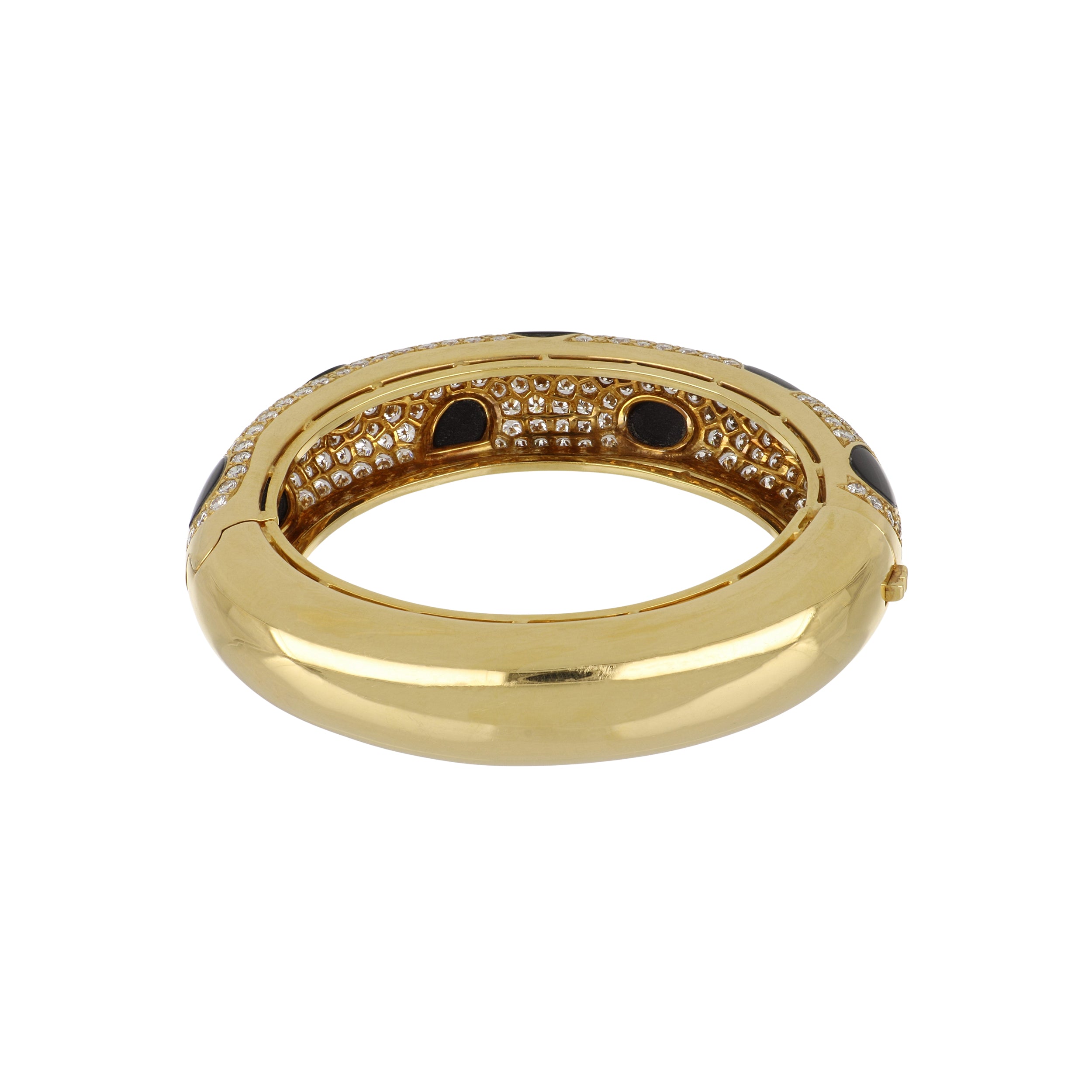 Estate 18K Gold Diamond Bangle Bracelet with Onyx