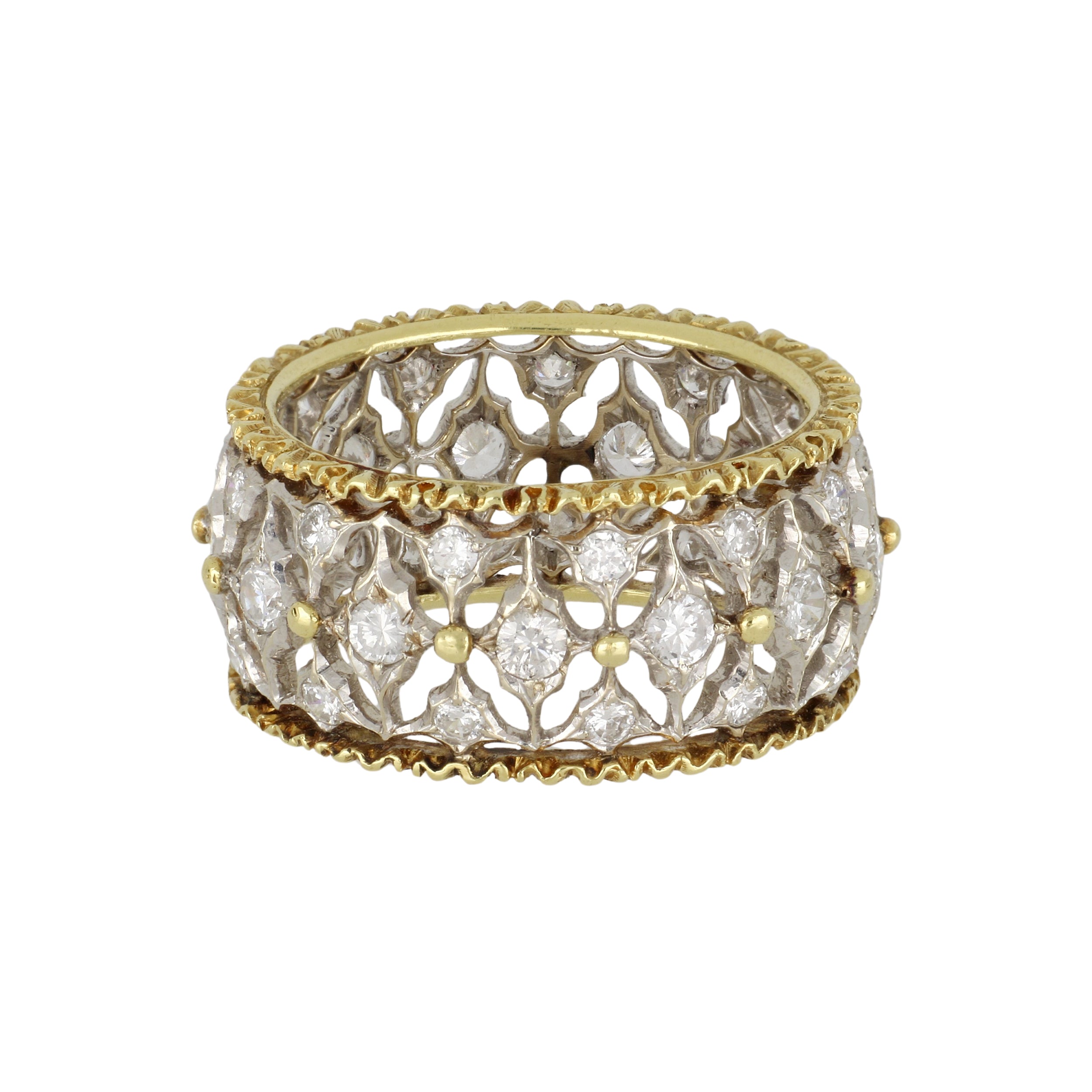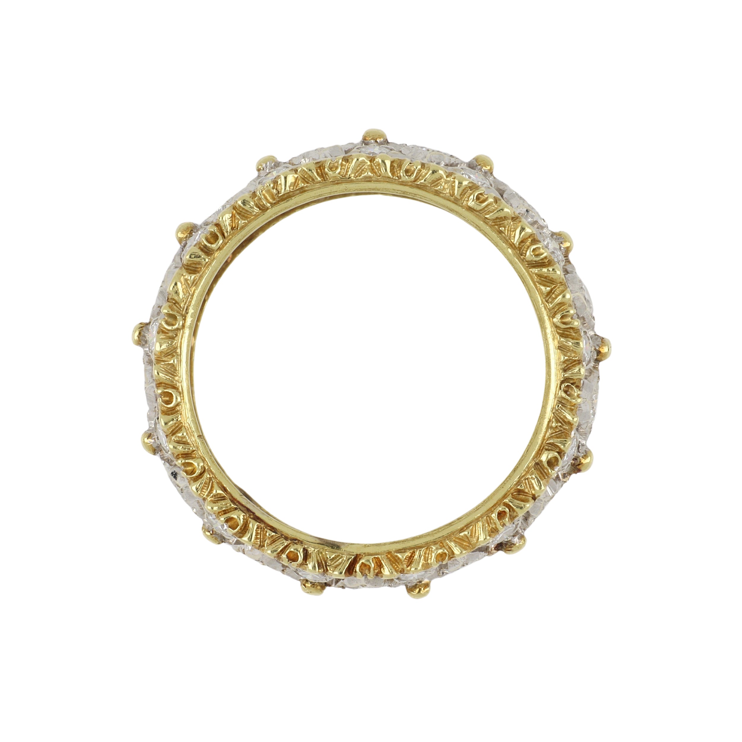 An estate Buccellati 18K white and yellow gold diamond wide eternity band.