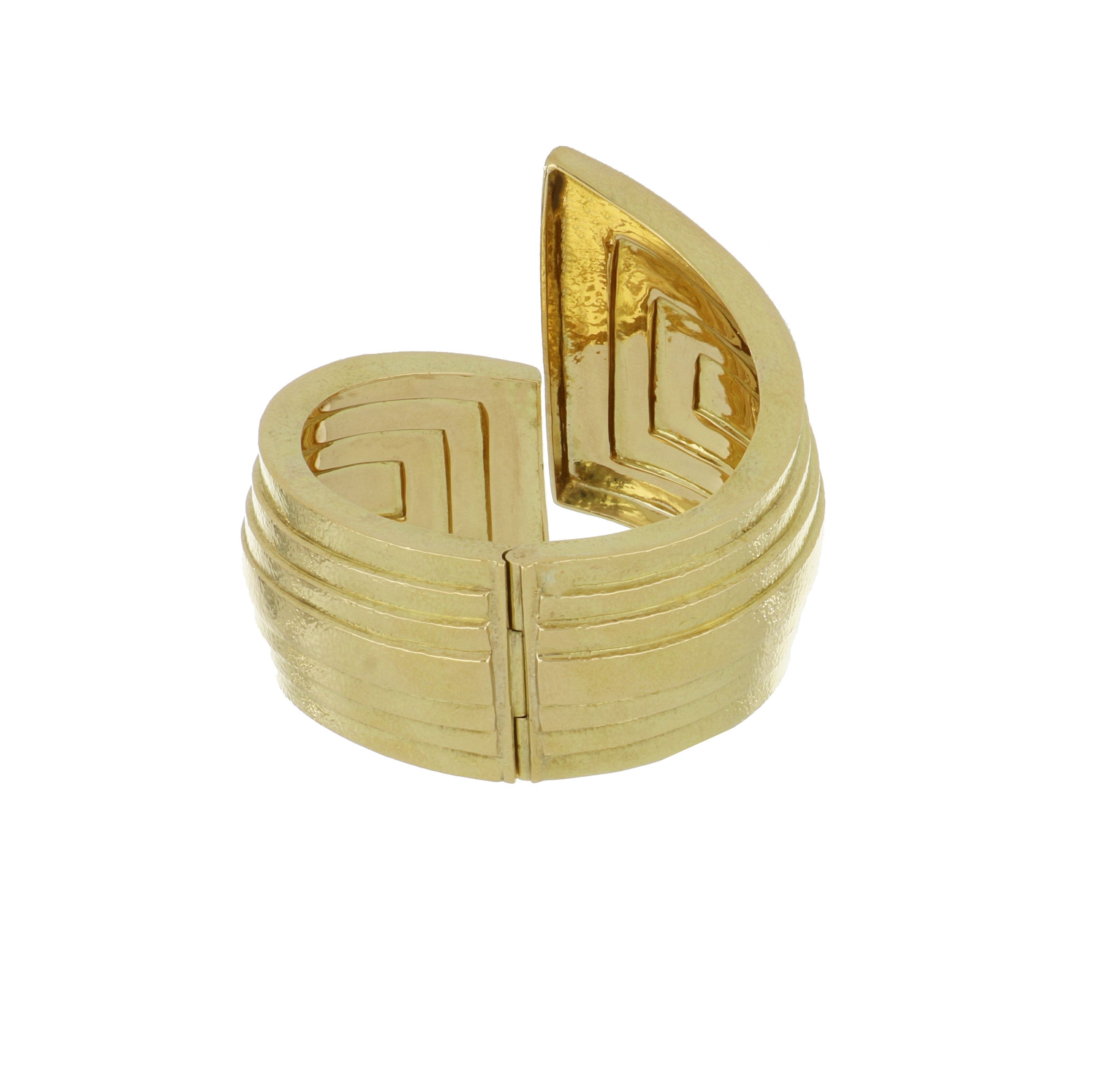 An estate David Webb chased, step cuff from the "Ancient World Collection" in 18k yellow gold.