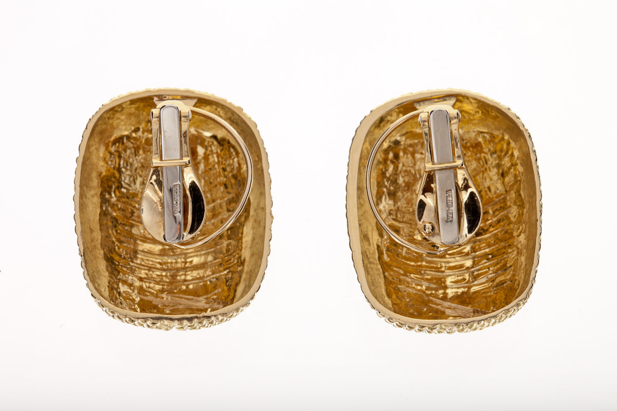 An estate pair of David Webb textured earrings in 18K yellow gold.