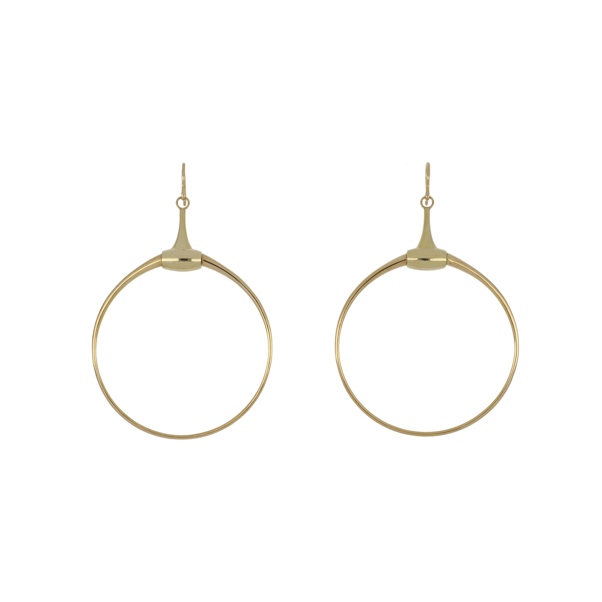 A pair of estate Gucci horse bit circle drop earrings, set in 18K yellow gold. Circa 2010.