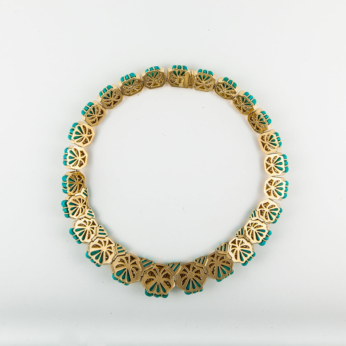 Estate Hammerman Bros. 18K Gold Turquoise & Diamond Collar Necklace