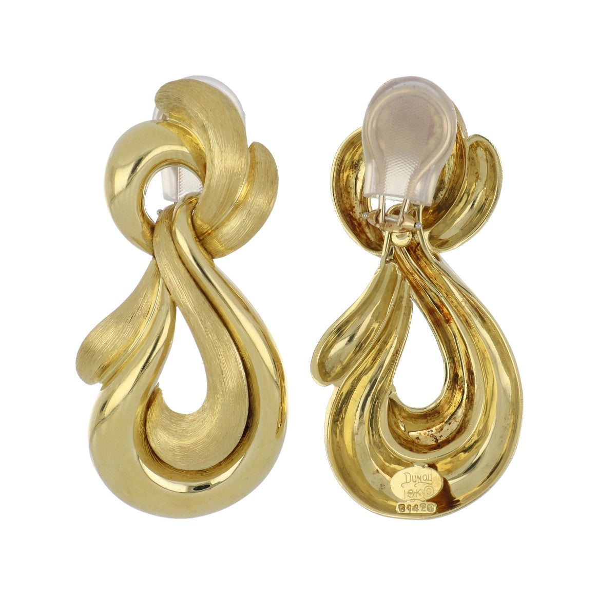 A pair of estate Henry Dunay 18K yellow gold swirl doorknocker motif earrings, with an alternating high polish and satin sabi finish. Circa 2000.