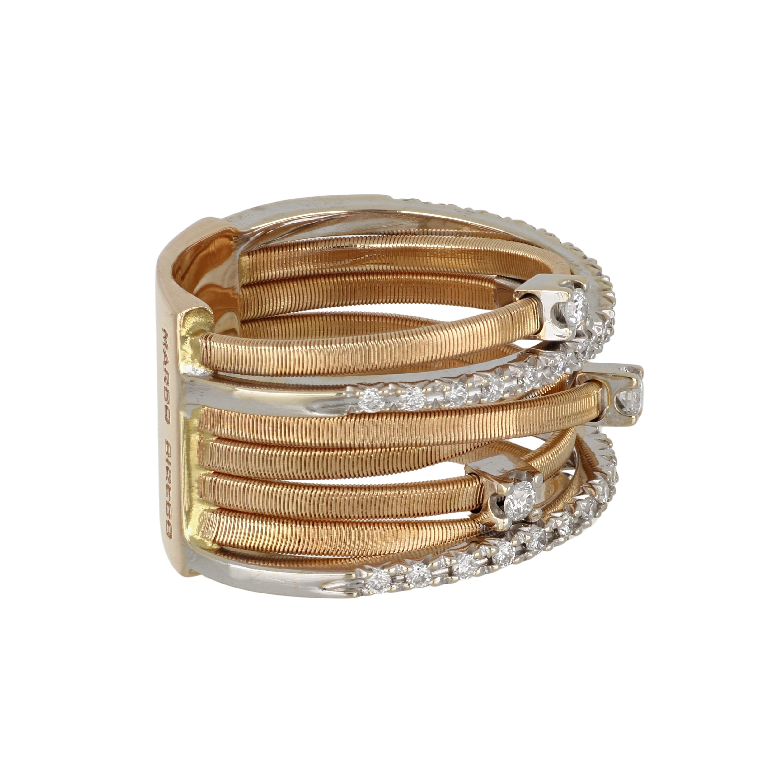 An estate Marco Bicego 'Goa' seven row mixed gold band with diamonds, set in 18K rose and white gold. Circa 2020.