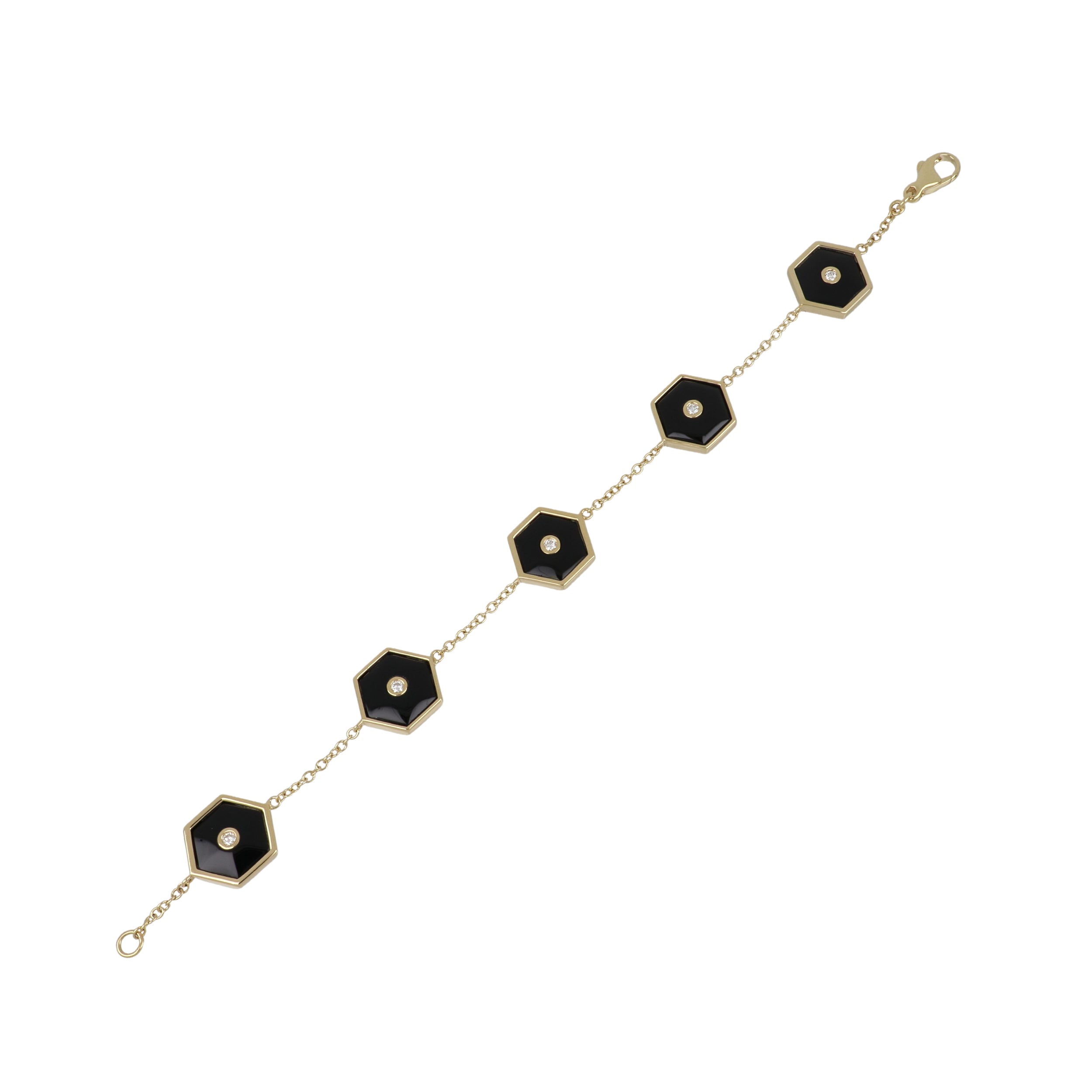 An estate modern, Miseno Italy "Baia Sommersa" hexagon onyx and round diamond link bracelet set in 18k yellow gold. Signed: Miseno Italy, Circa 2020.
