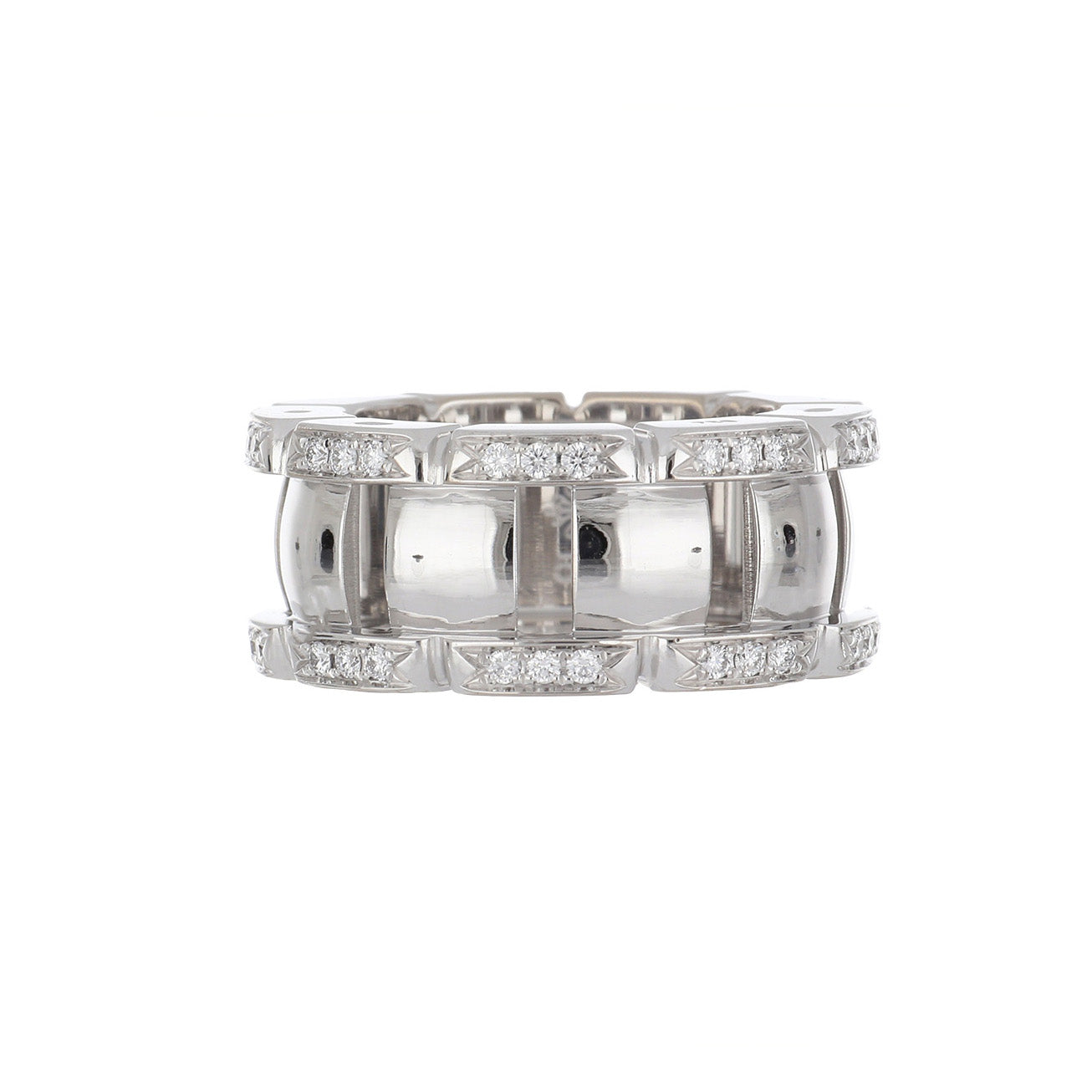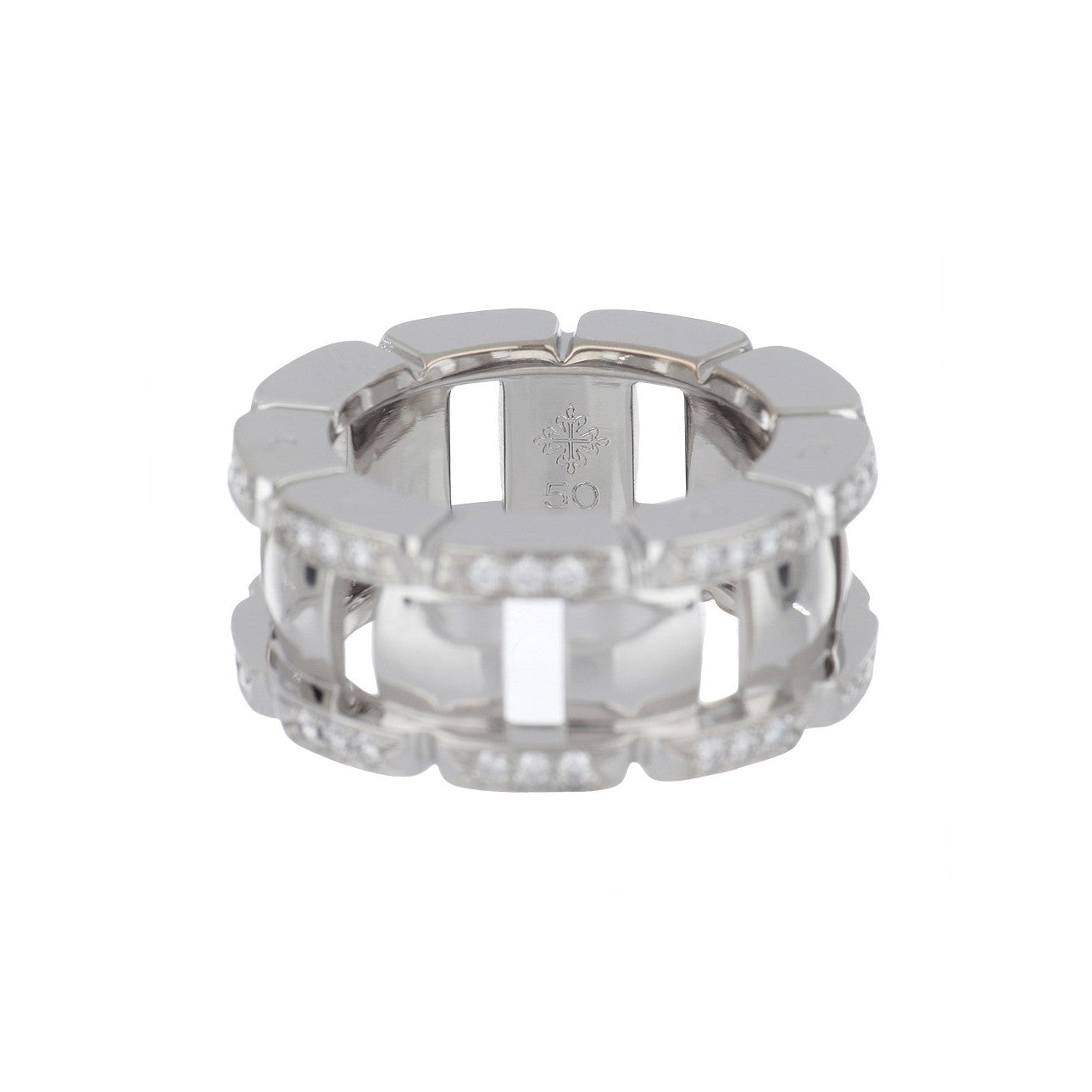A classic estate Patek Philippe Twenty-4 ring with pave round brilliant-cut diamonds, set in 18K white gold.