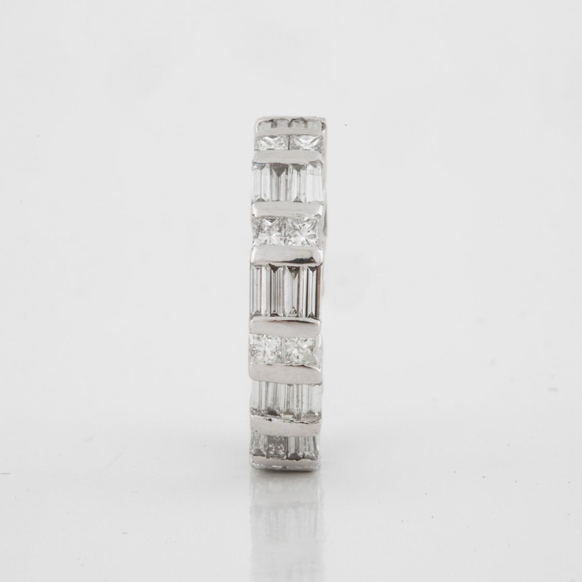 An estate alternating shape, diamond eternity band set in platinum. Circa 2000.