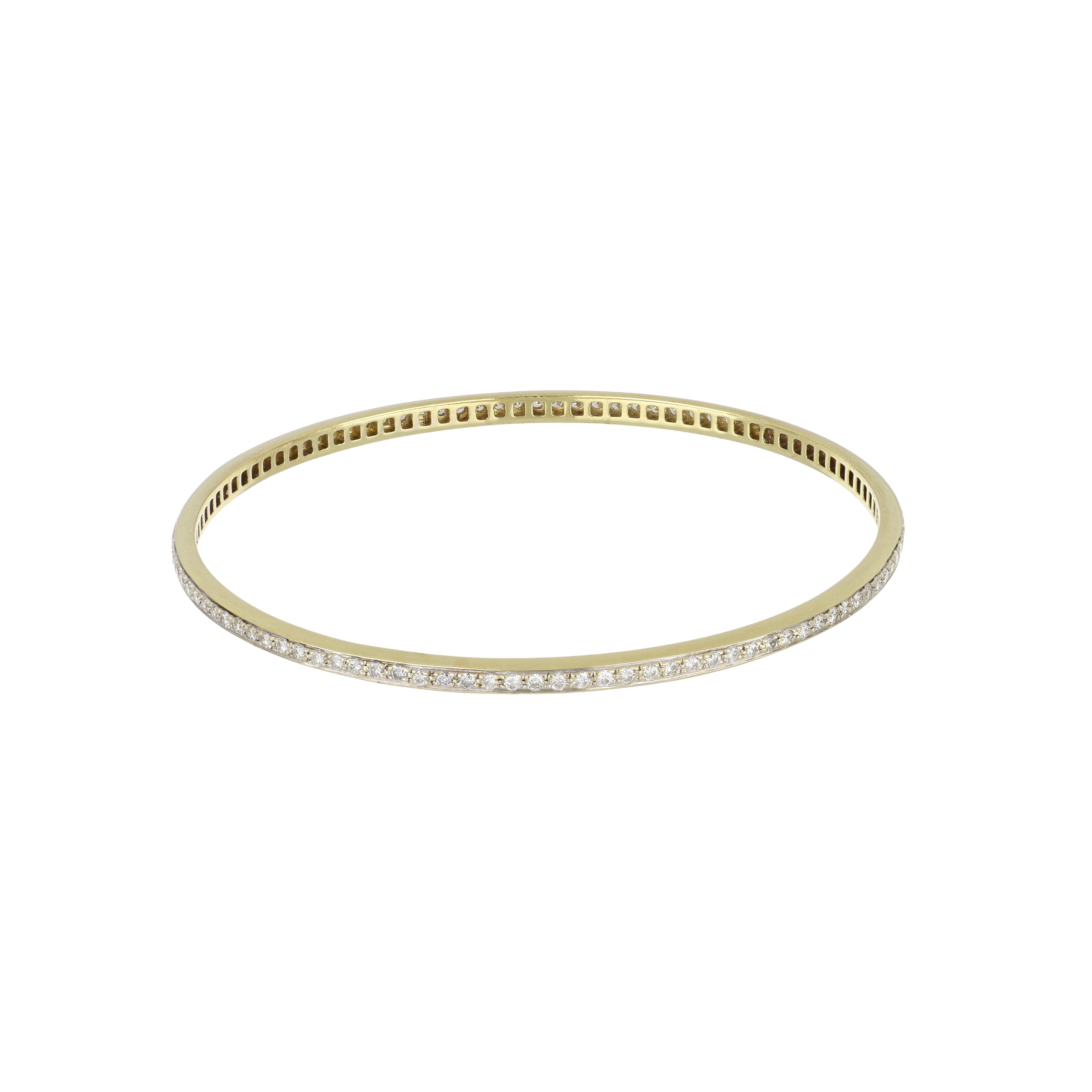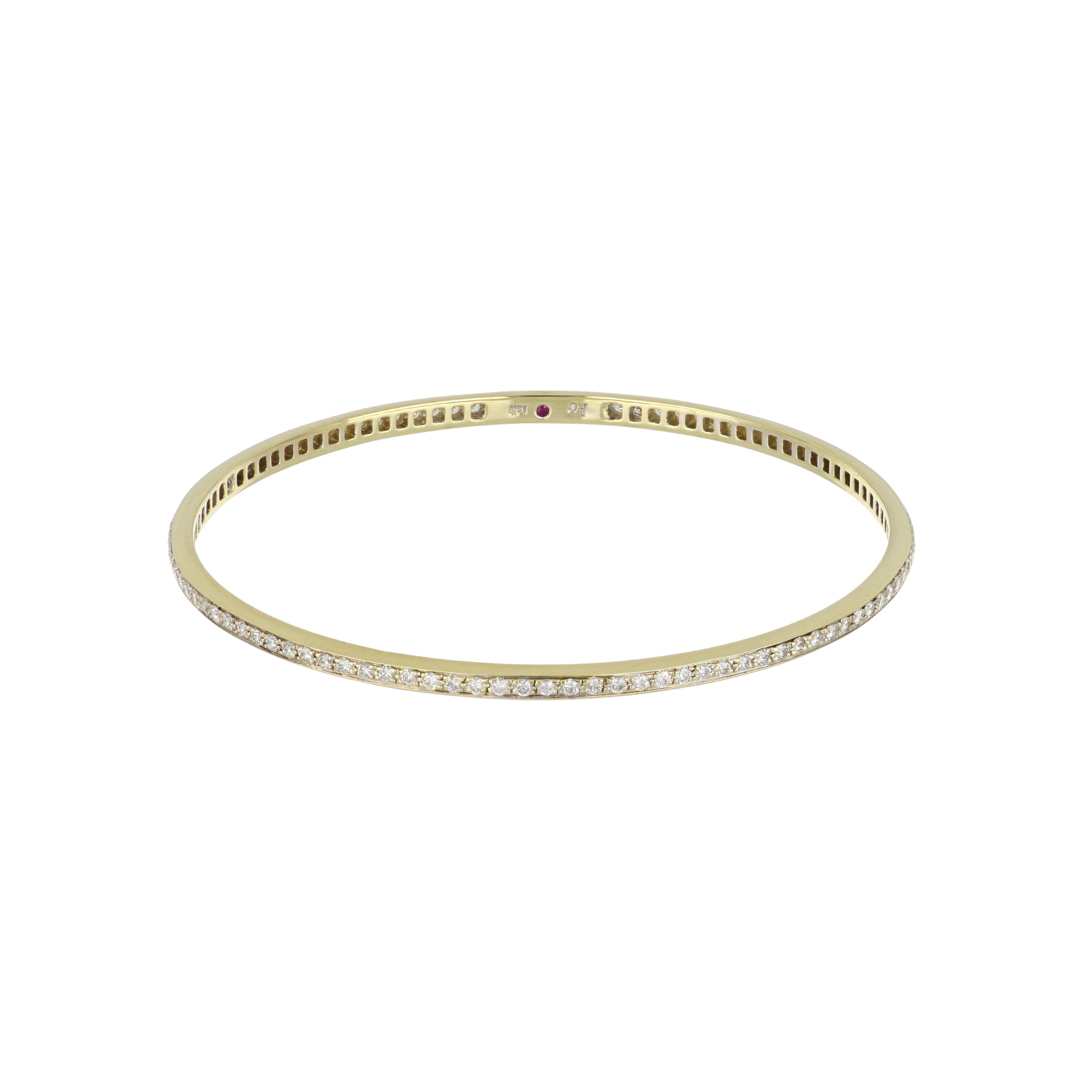 An estate Roberto Coin pave round brilliant-cut diamond eternity bangle set in 18K yellow gold. Circa 2000.