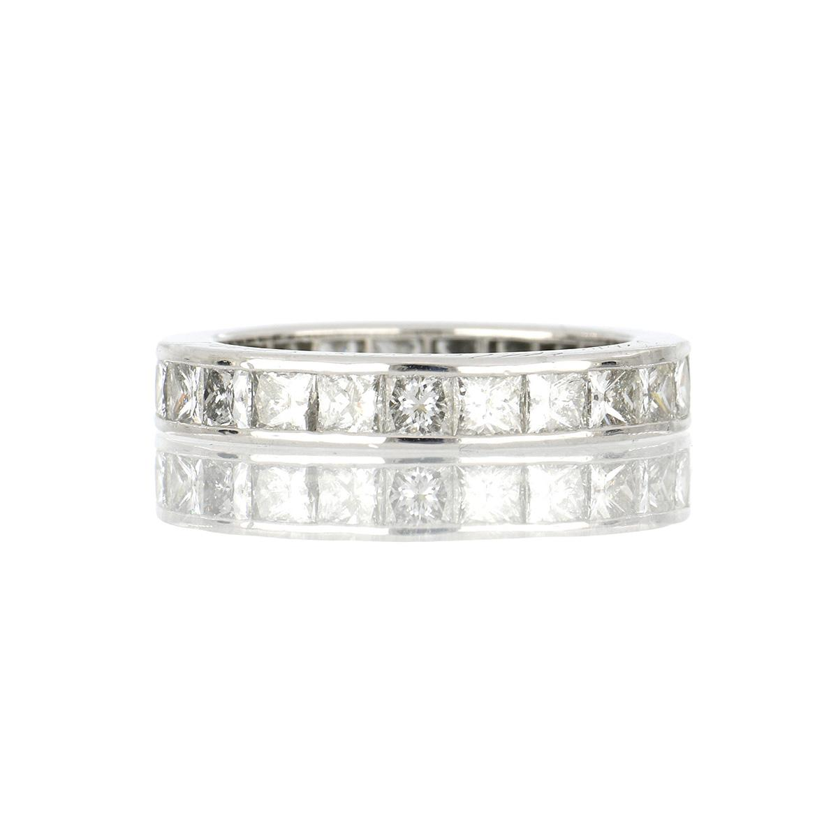 An estate Van Cleef & Arpels platinum princess cut diamond eternity band. Circa 2000.