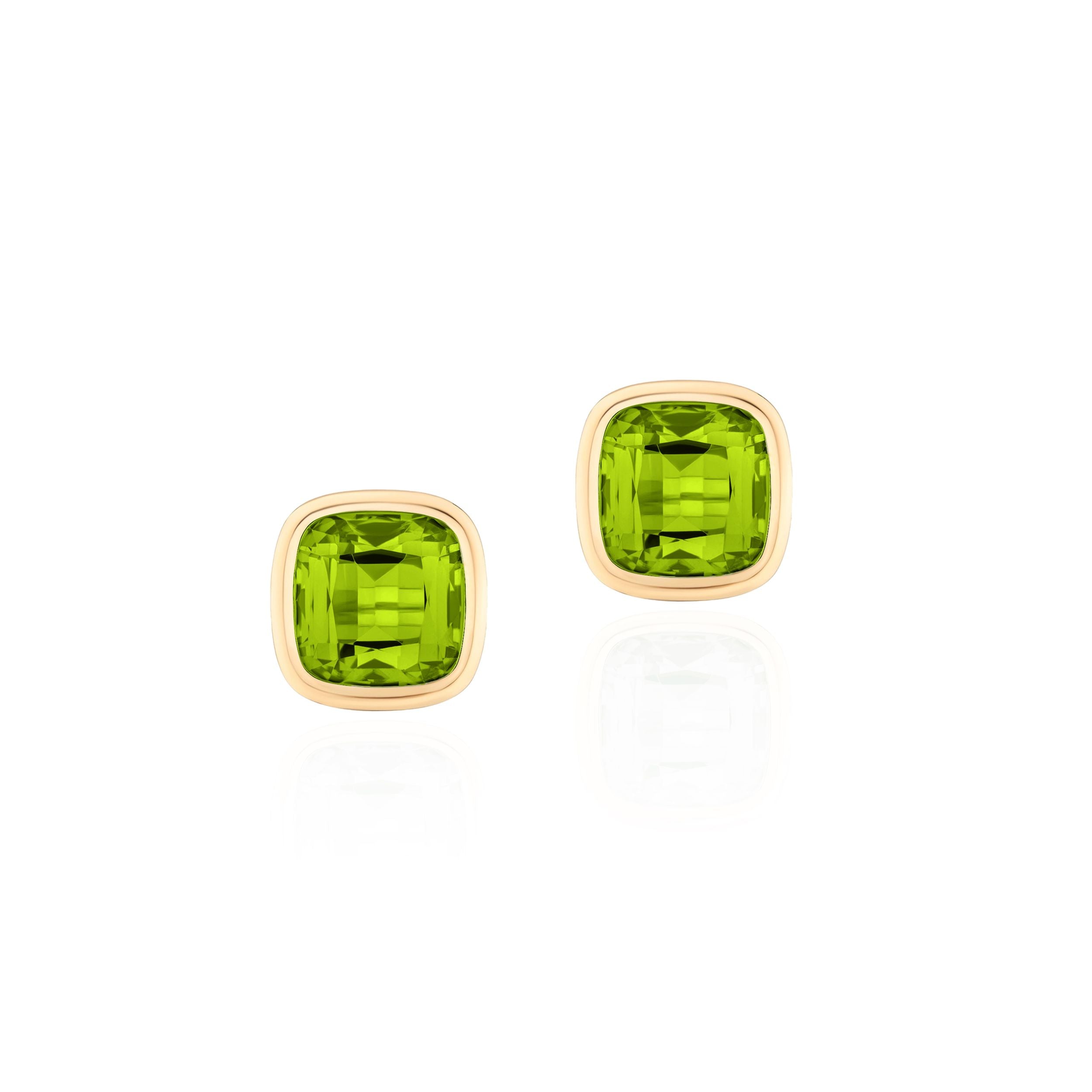 Goshwara 18K Manhattan Peridot Cushion Bezel-Set Studs