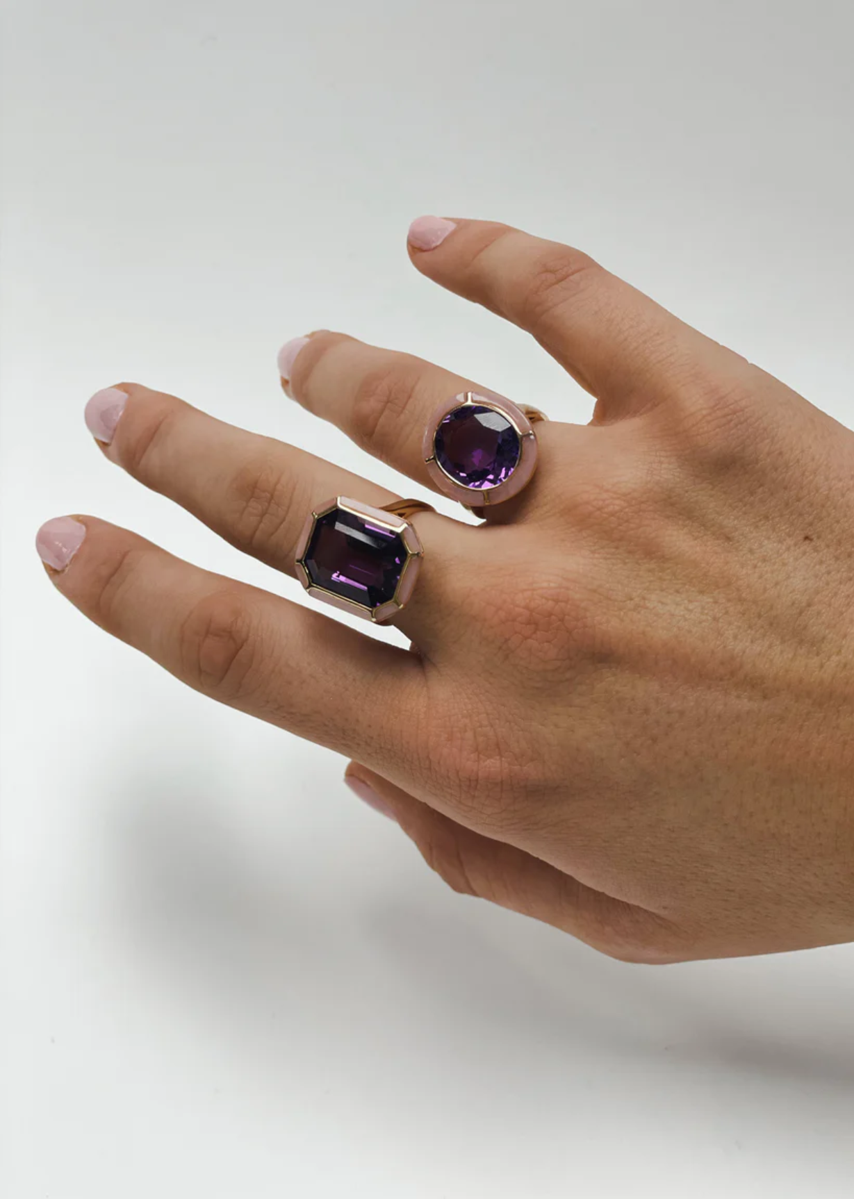 A Goshwara 'Melange' collection 'ring featuring an emerald-cut amethyst framed by pink opal inlay in 18K rose gold.