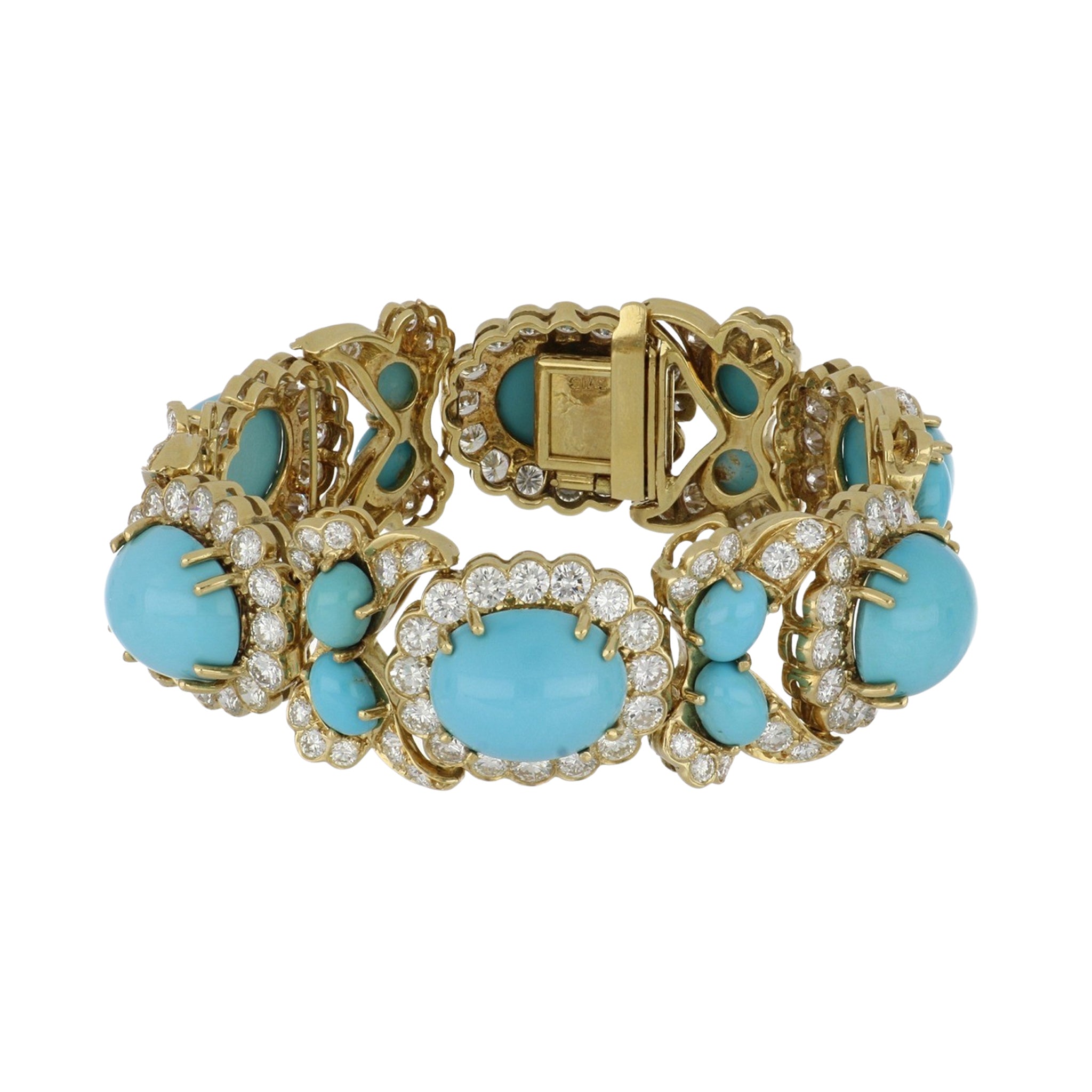 Important Estate Emis 18K Gold Turquoise and Diamond Jewelry Suite