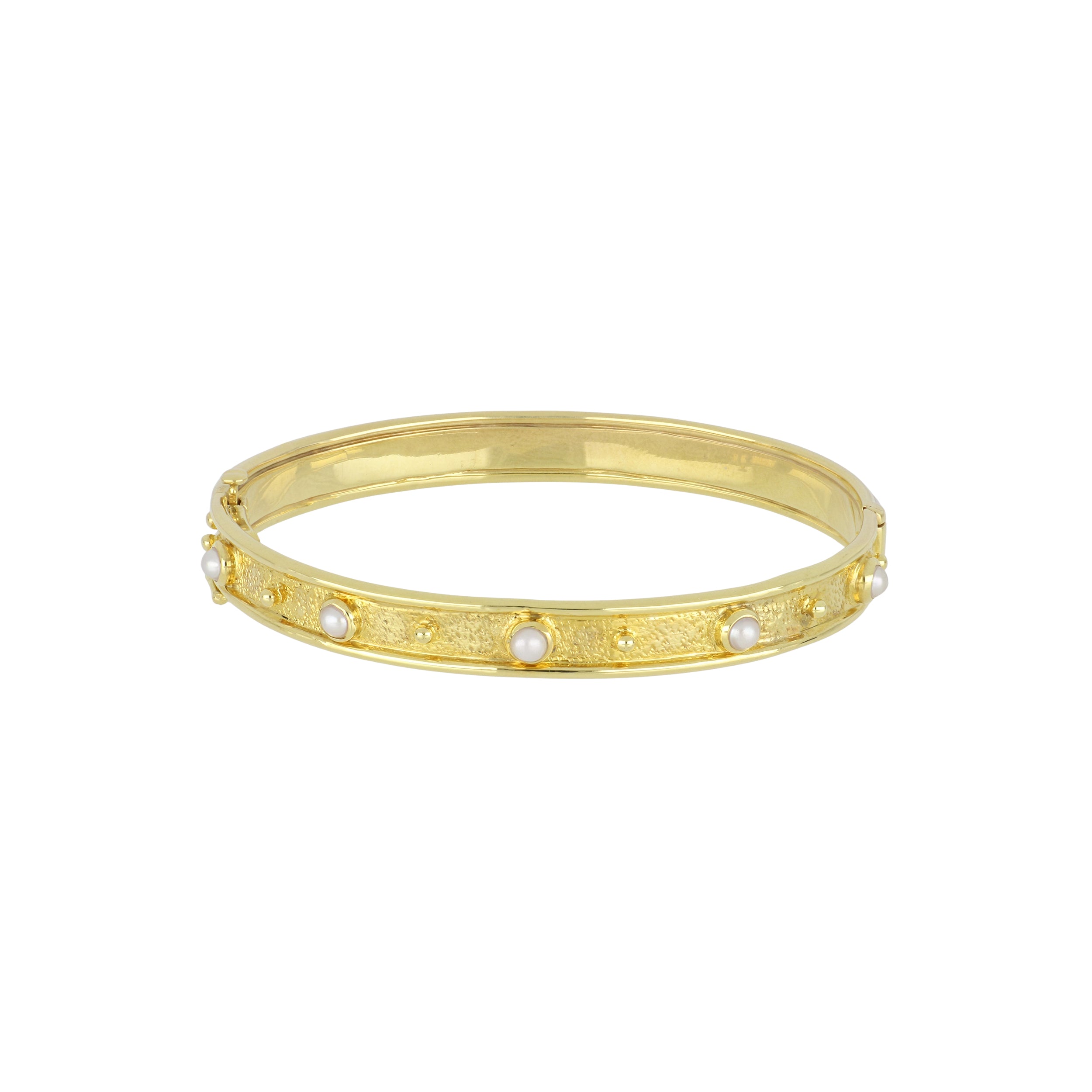 A Mazza pearl hinged bangle bracelet with a hammered finish, in 14K yellow gold.Official RetailerSize: 6.50 inches