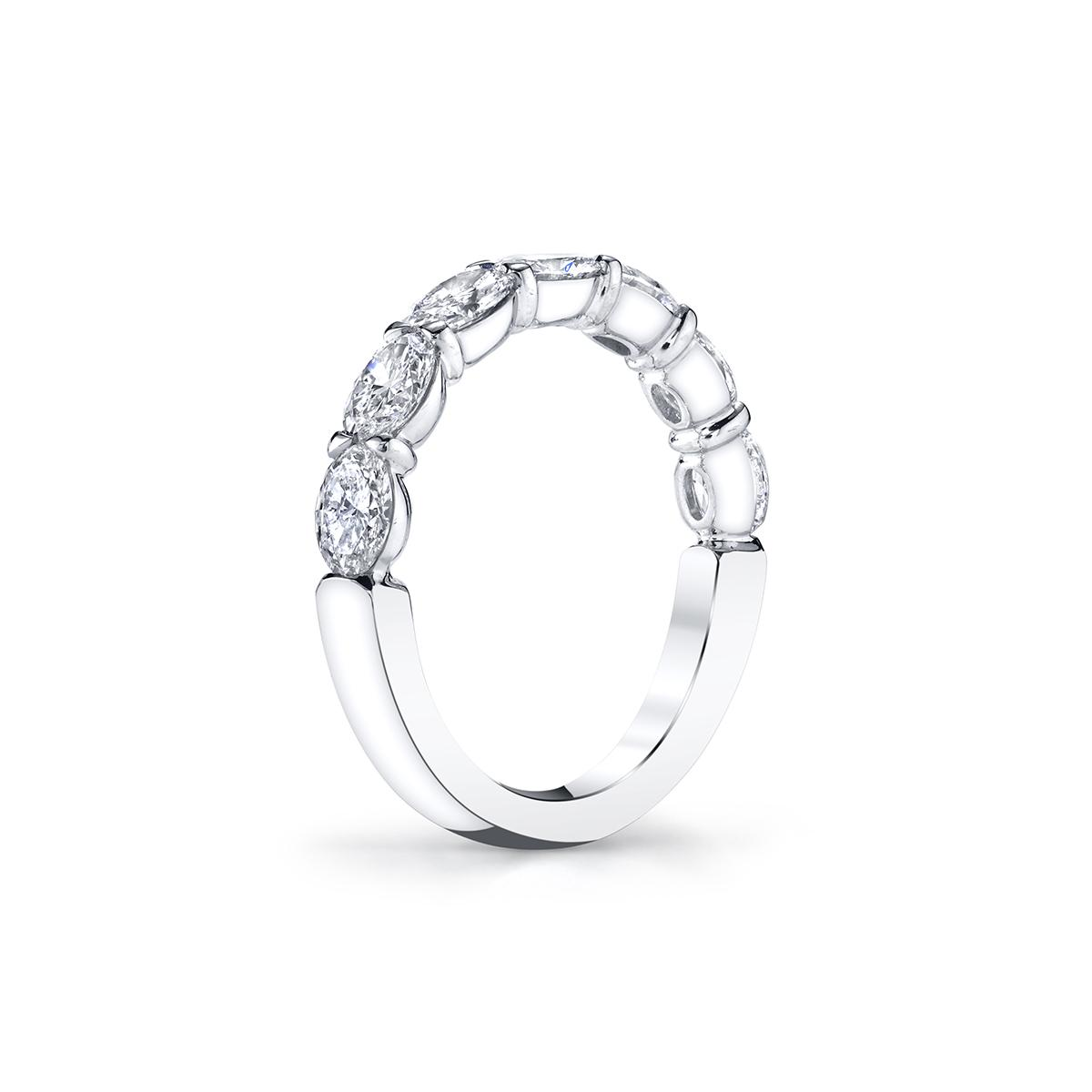 A new east-west oval-cut diamond buttercup style half band in platinum.