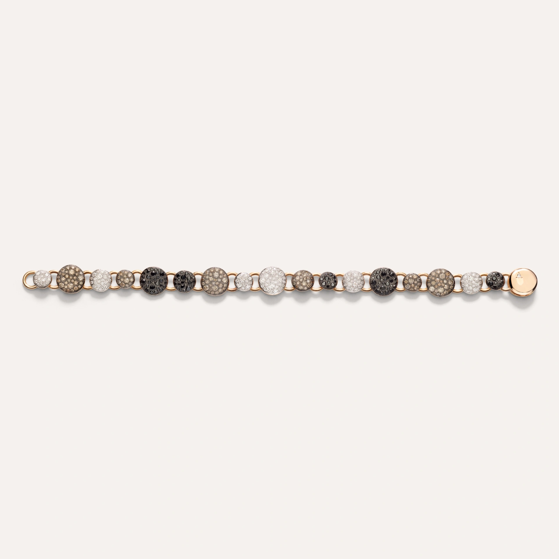 A Pomellato Sabbia bracelet with brown, white, and black diamonds, set in 18K rose gold.