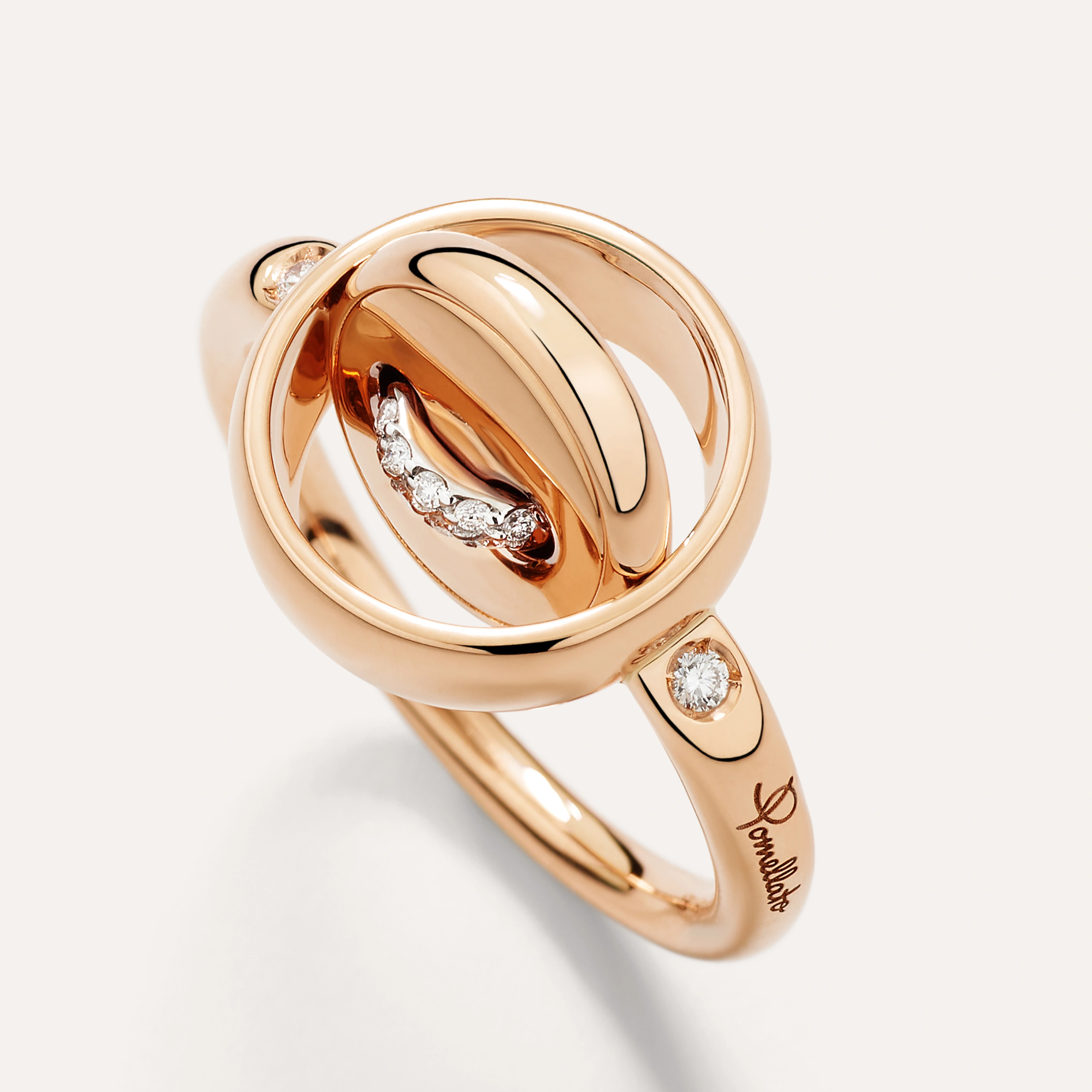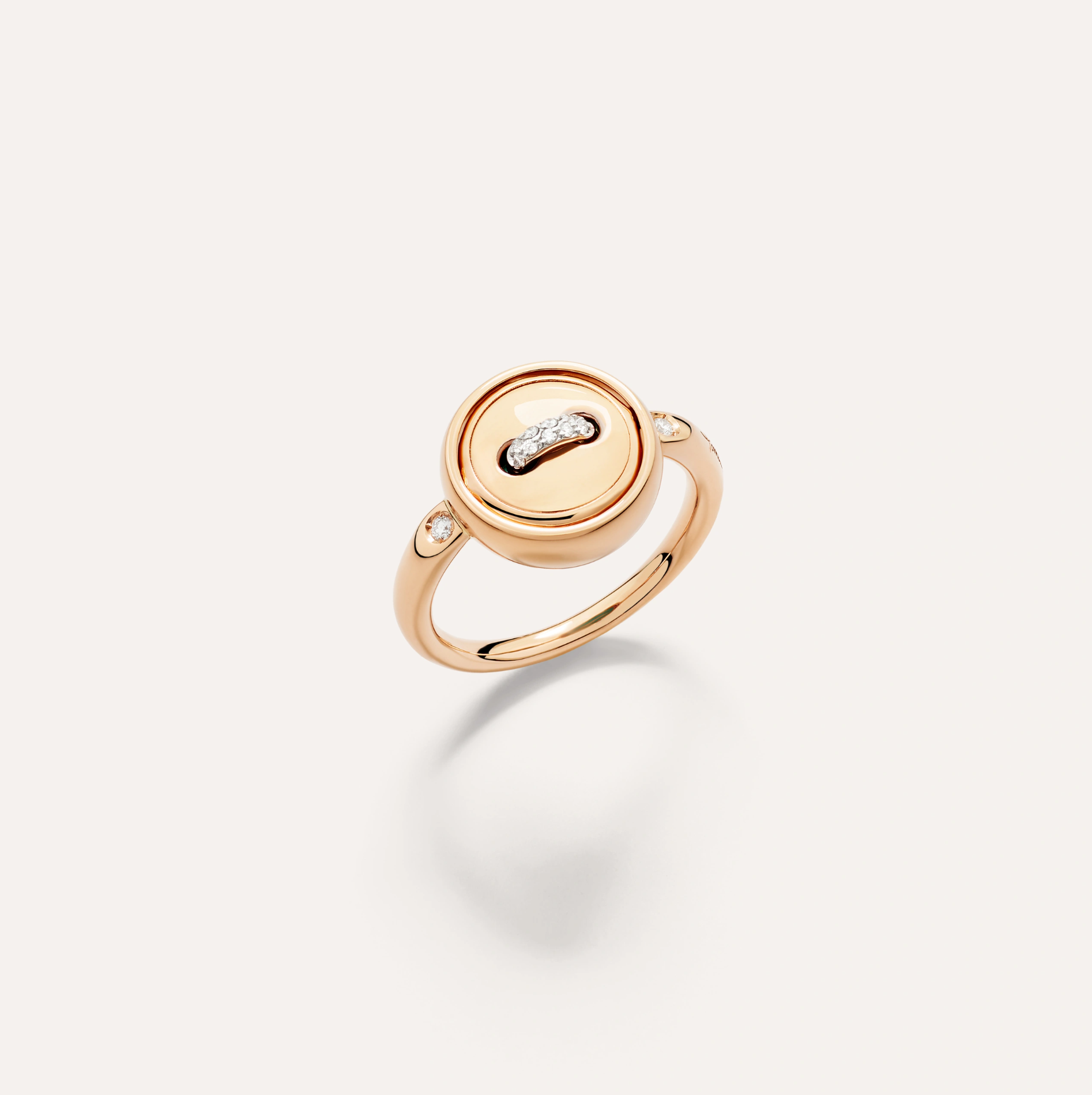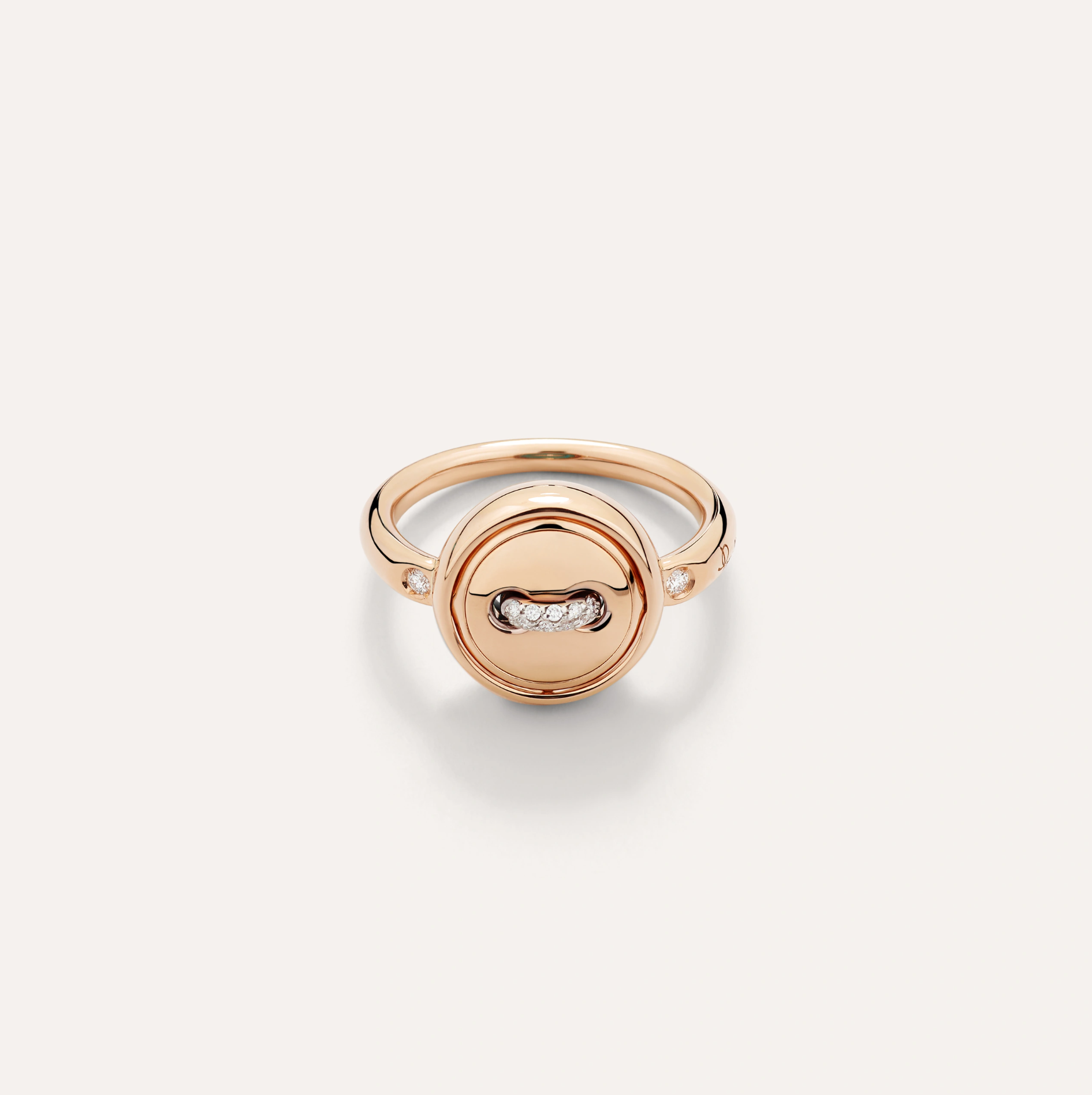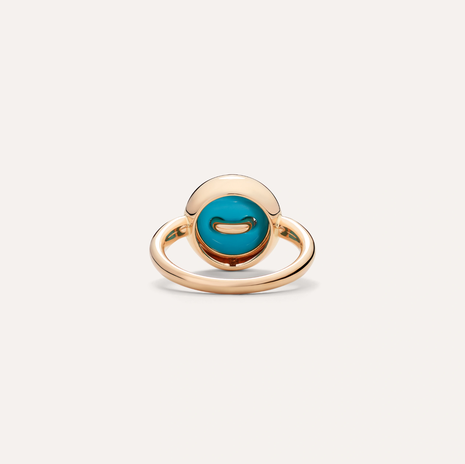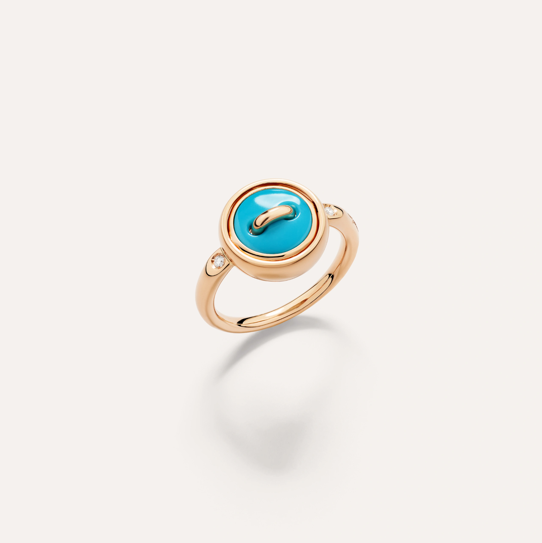 A Pomellato Pom Pom Dot reversible turquoise ring with diamonds, set in 18K rose gold.