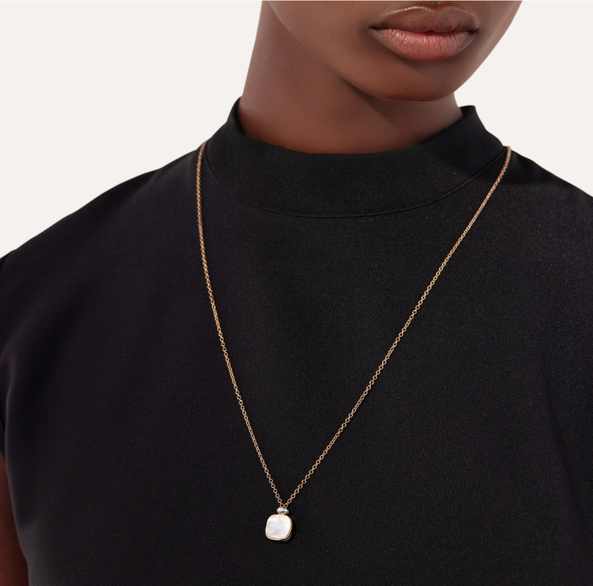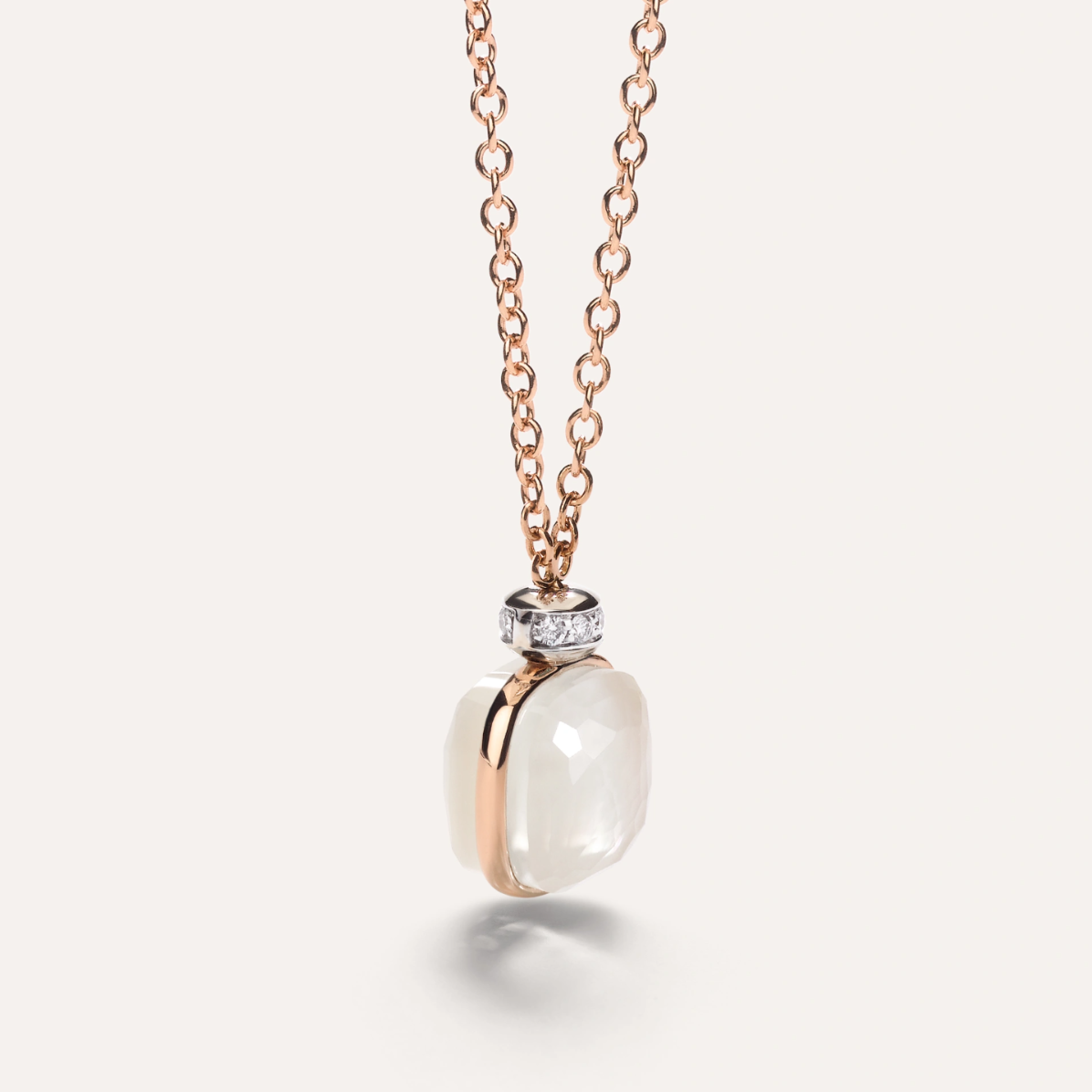 A Pomellato white topaz and mother-of-pearl doublet Nudo Classic pendant necklace with diamonds, set in 18K rose and white gold.