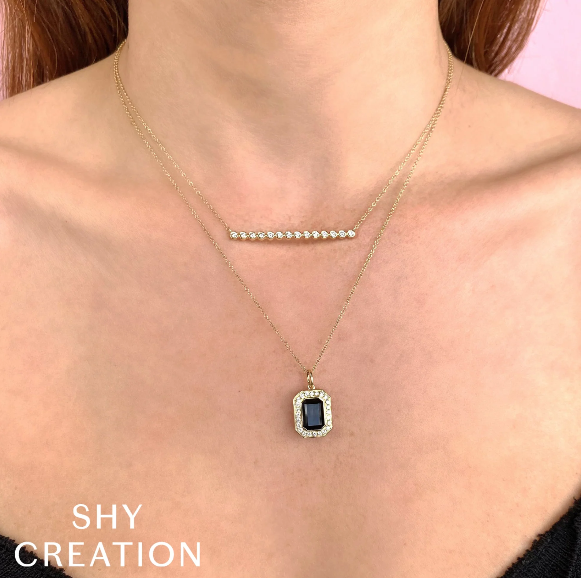 Shy Creation 14K Gold Bezel-Set Diamond Bar Necklace