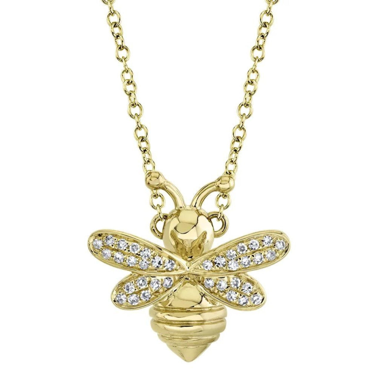 Shy Creation 14K Gold Diamond Bee Pendant Necklace