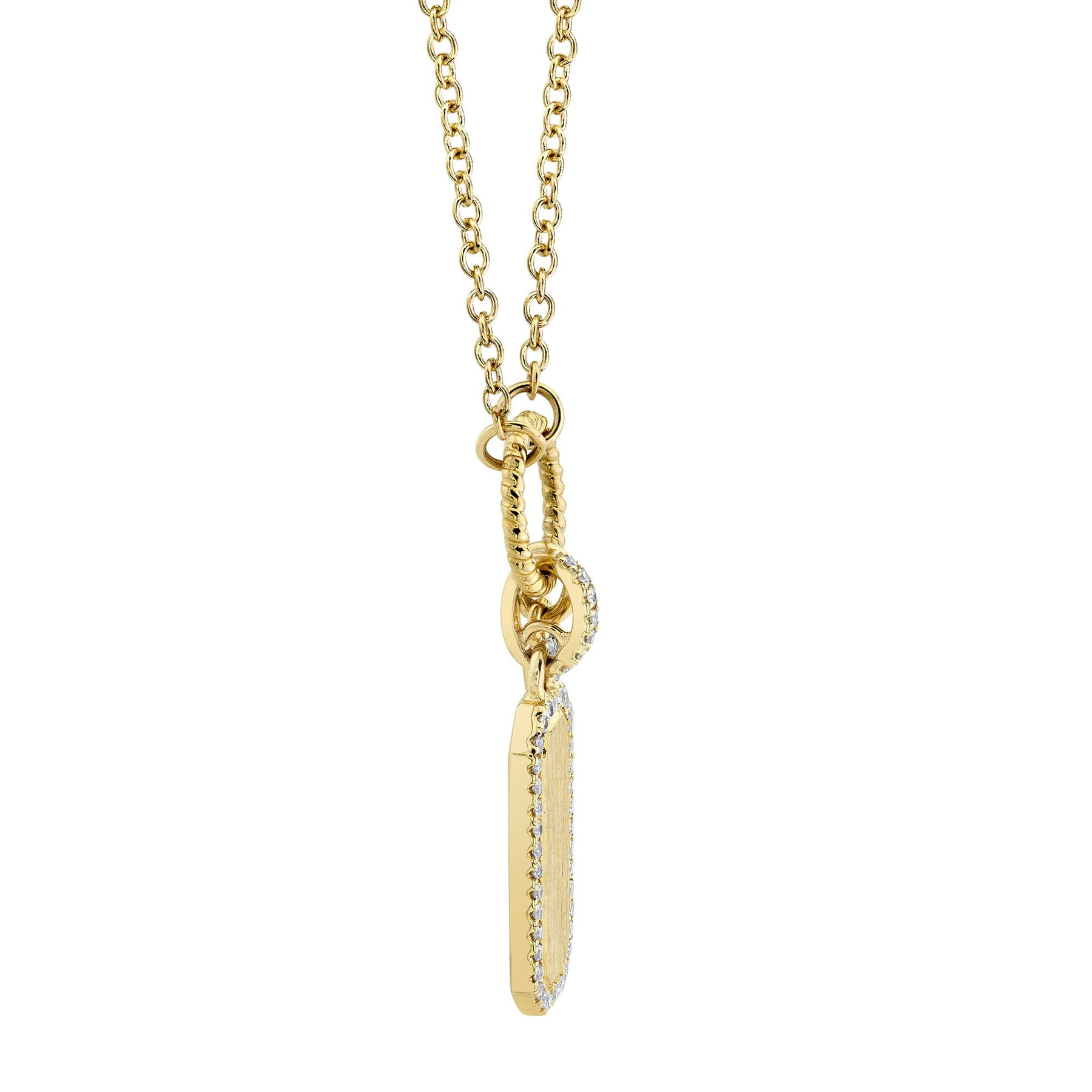A Shy Creation diamond dog tag pendant necklace, set in 14K yellow gold.