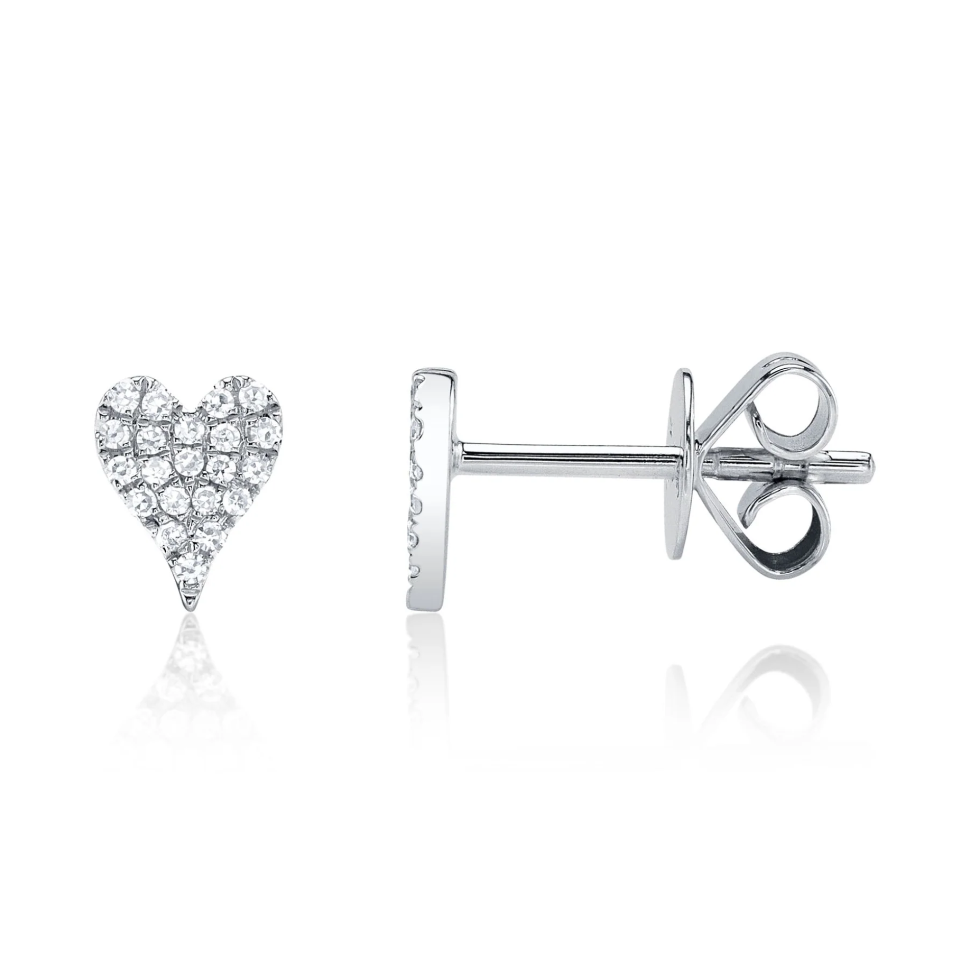Shy Creation 14K White Gold Pavé Diamond Heart Stud Earrings