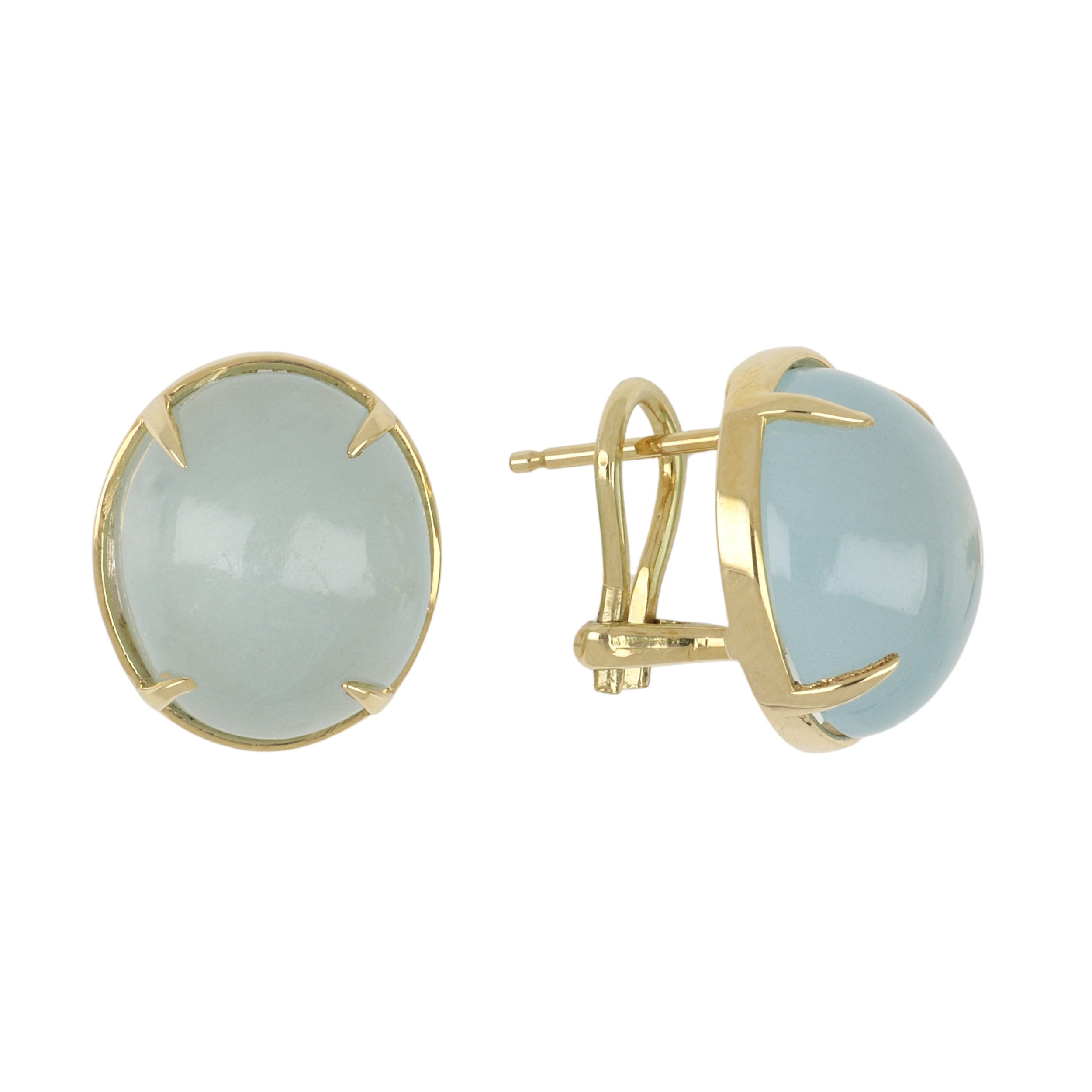 Tenenbaum 18K Gold Cabochon Aquamarine Button Earrings