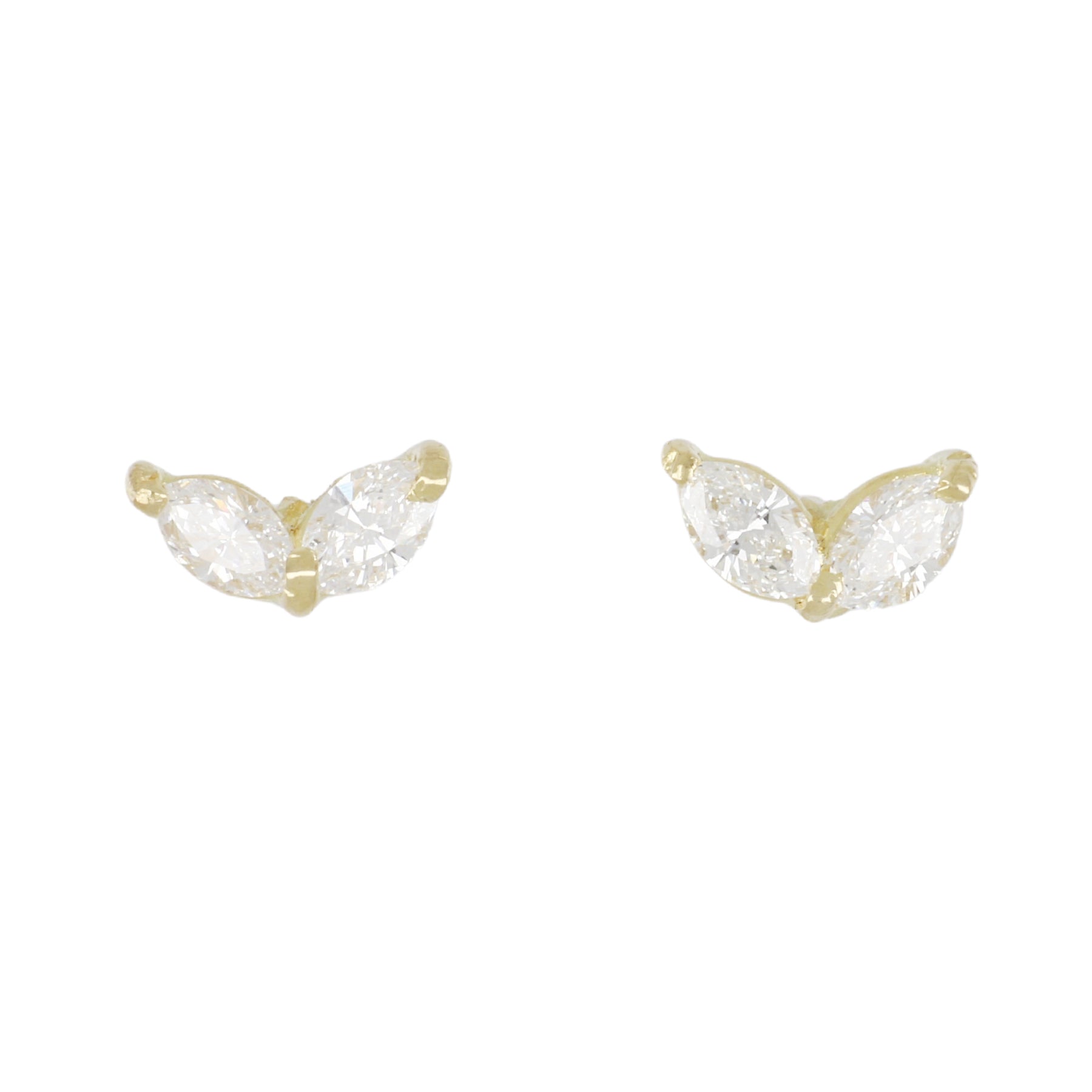 A pair of marquise cluster diamond stud earrings, set in 18K yellow gold.Tenenbaum Workshop Collection 4 Marquise diamonds: 0.29 total carat weight, G-H color, VS1-VS2 clarity