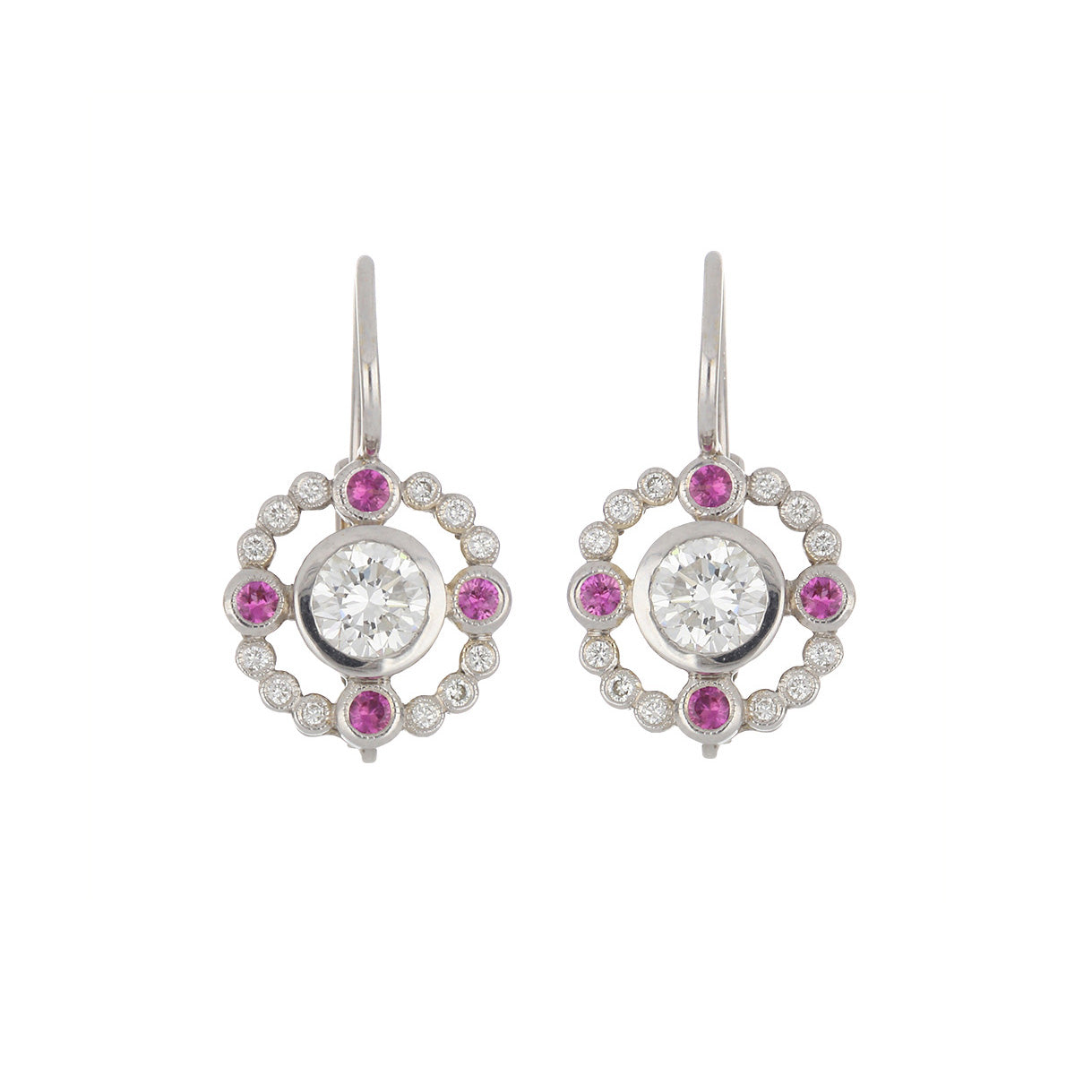 Tenenbaum 18K White Gold Diamond Drop Openwork Earrings with Pink Sapphires