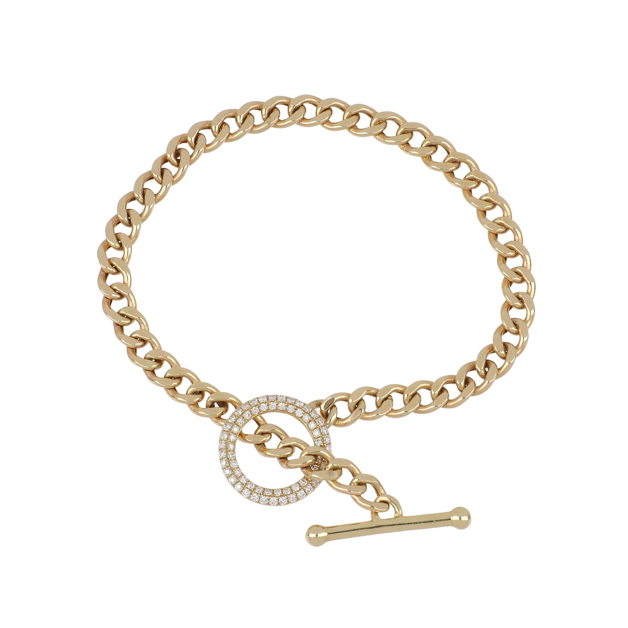 A 14K yellow gold chain link bracelet with diamond ring toggle closure.